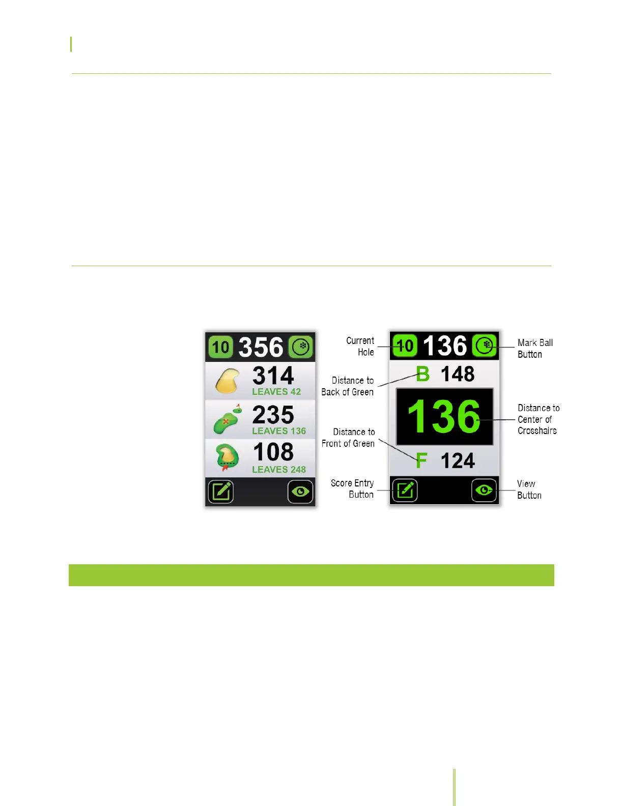 Displays the distances to the front, center and back of the green from