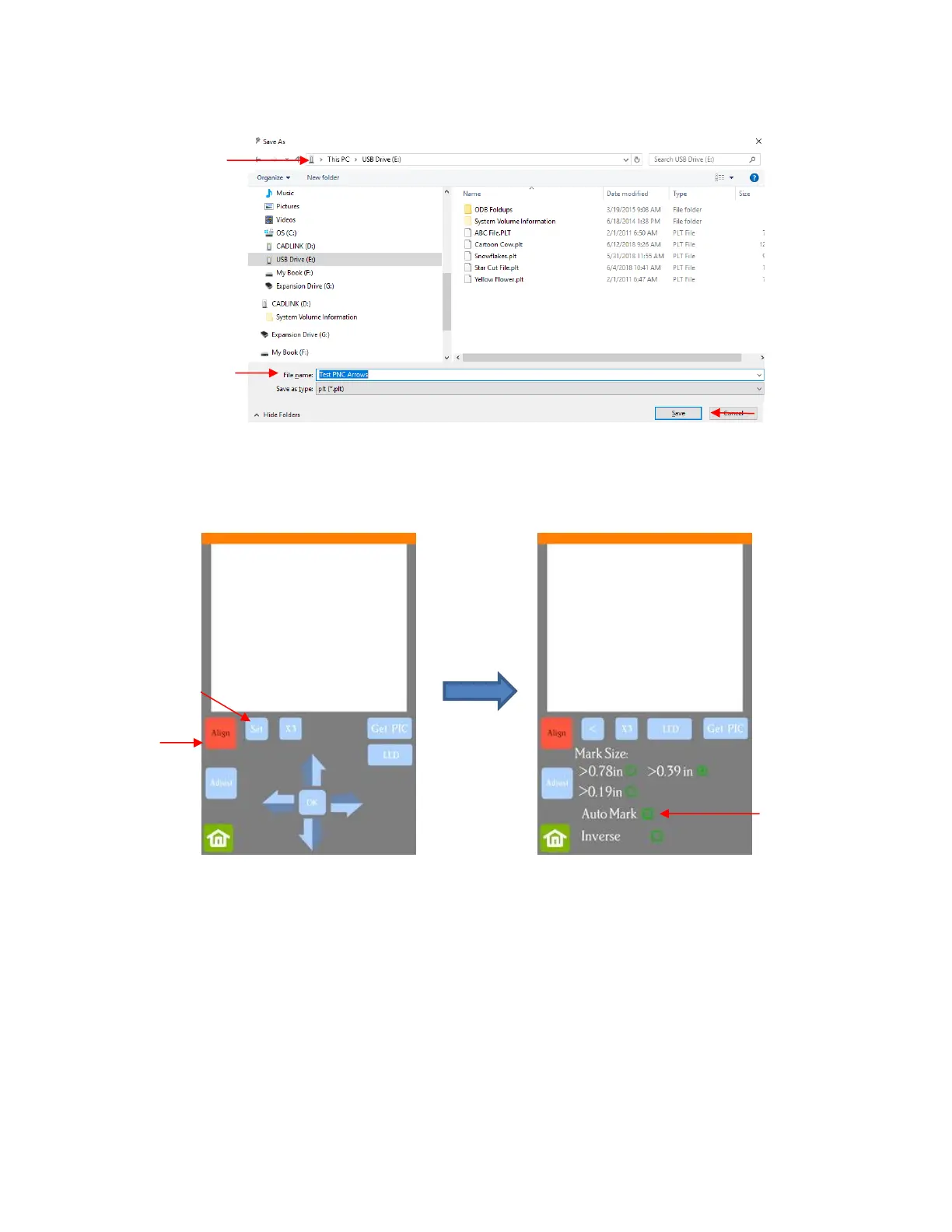 • Insert the flash drive into the right side of the Skycut and use the instructions in Section 1.12.4 to open the