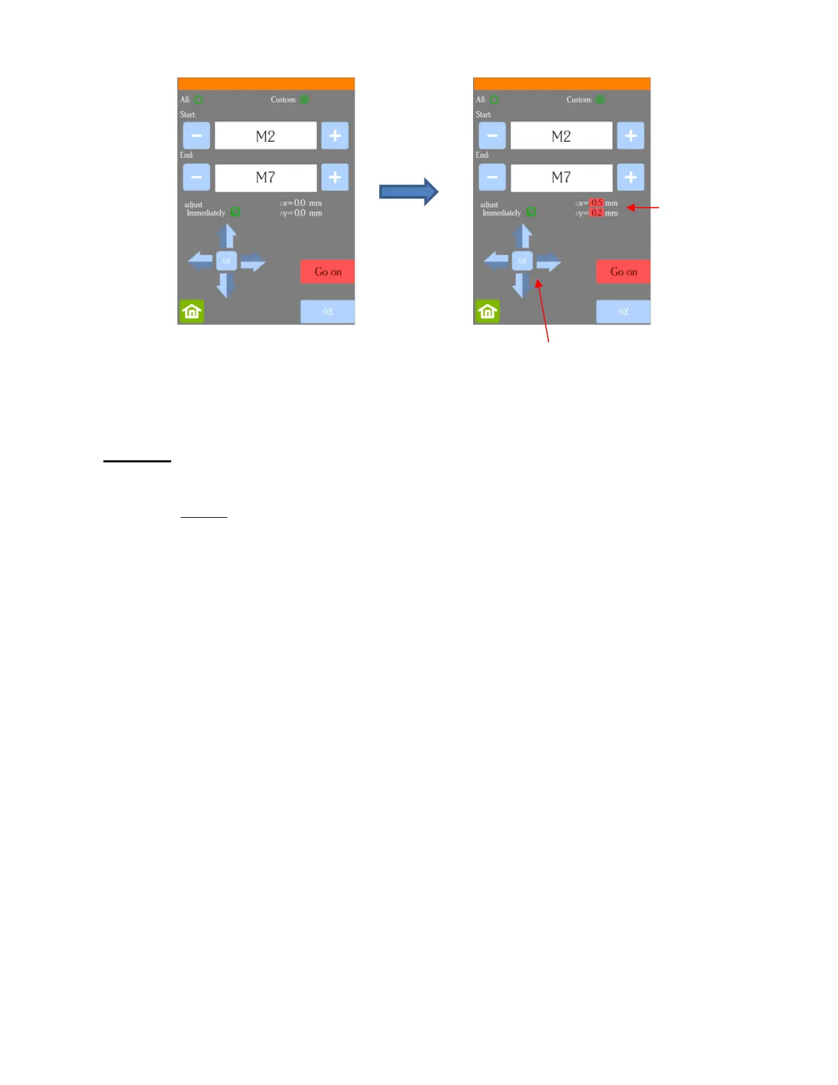 Once you have entered the Δx and Δy values you wish to use, press the Go on button and the cutting