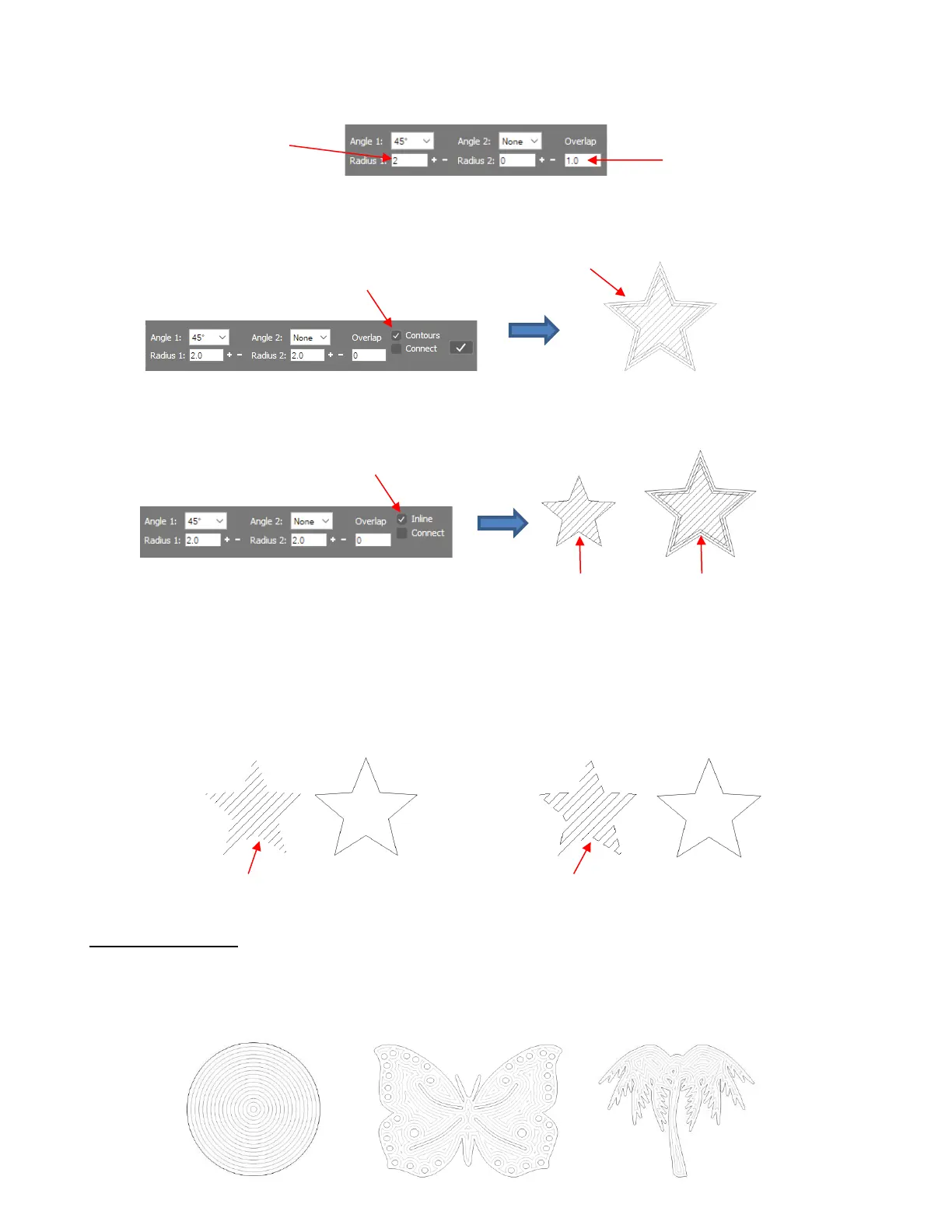 • The Contour Fill (sometimes referred to as an island fill) is a progressive inset pattern based on the original