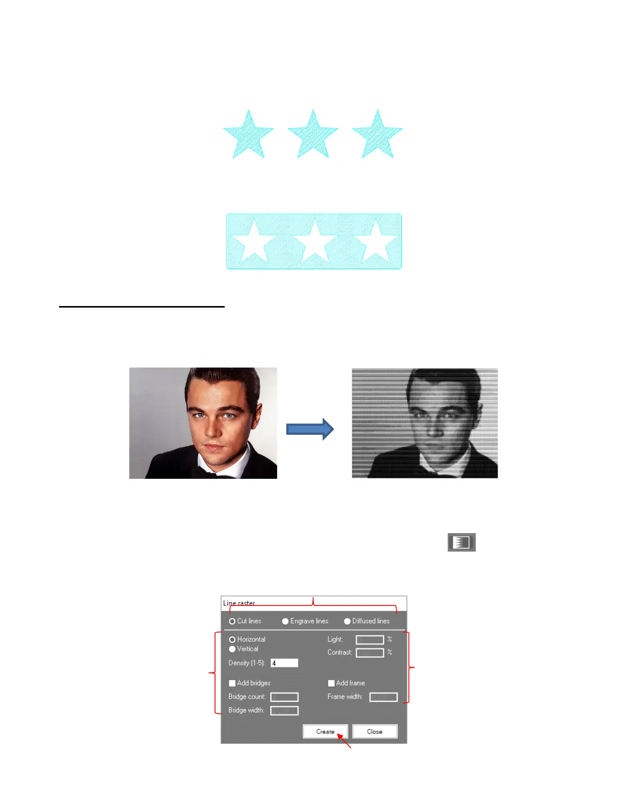 • After importing a bitmap image, click on the Create line raster from bitmap icon and the following