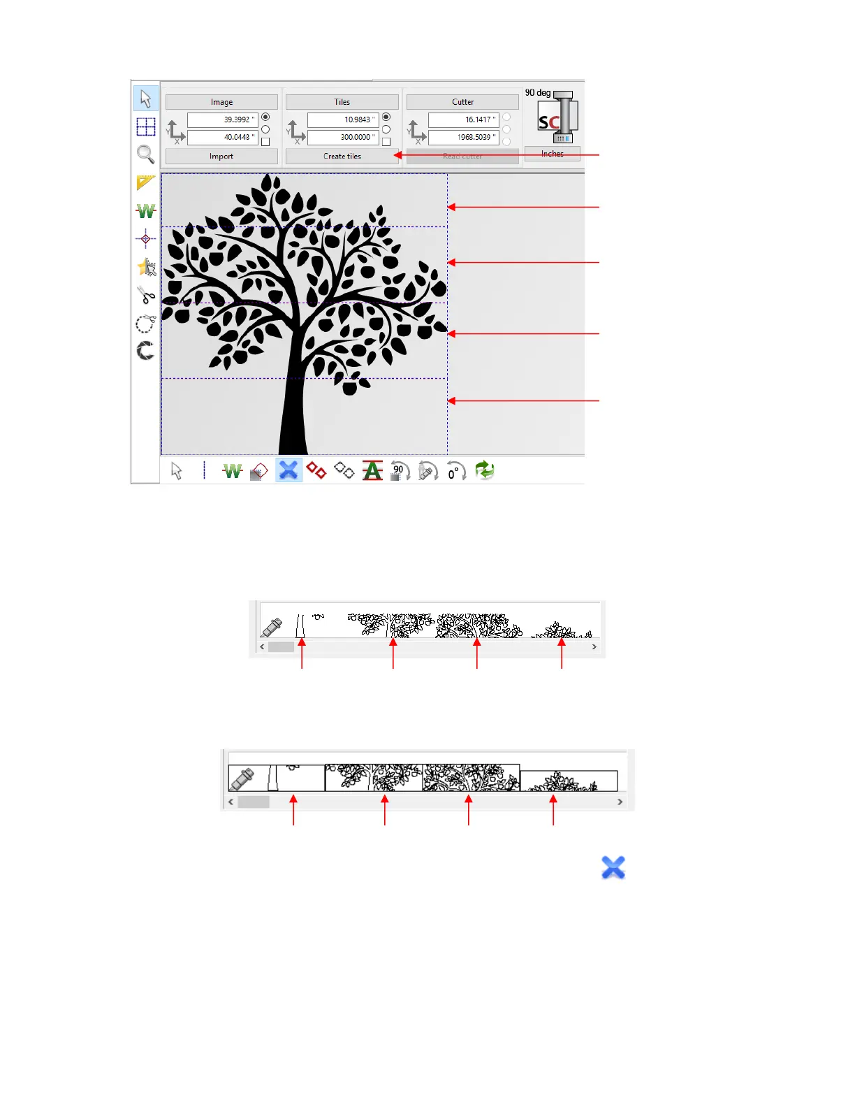 • If you prefer to not cut all of the tiles, click on the Activate / deactive tiles icon located on the sub-