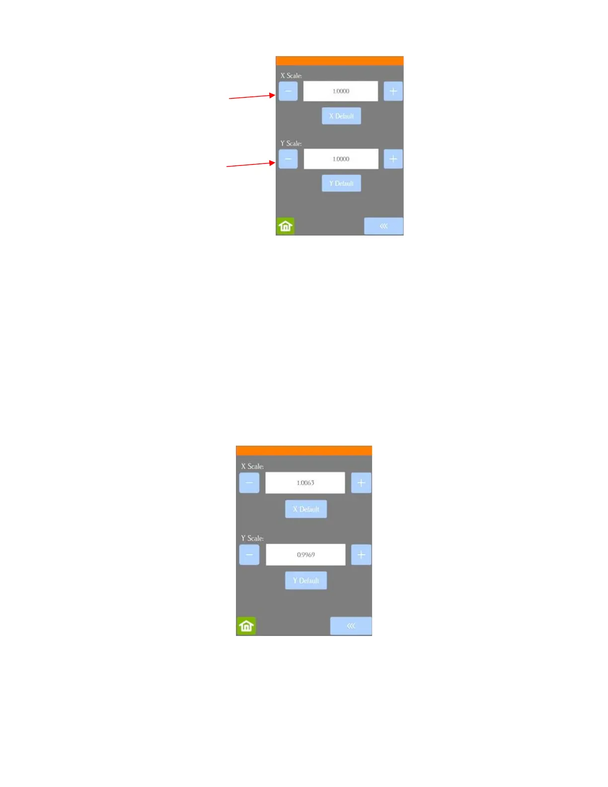 Return to the Scale screen (Set>Advanced Settings>Scale) and use the + and buttons to enter the