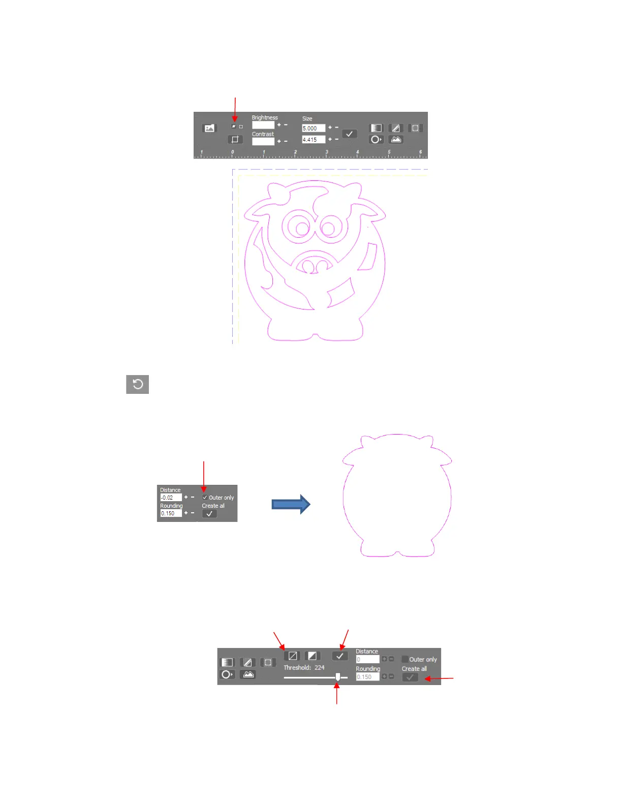 • If the trace lines are not fitting the original bitmap to your satisfaction, a Threshold setting can be adjusted.