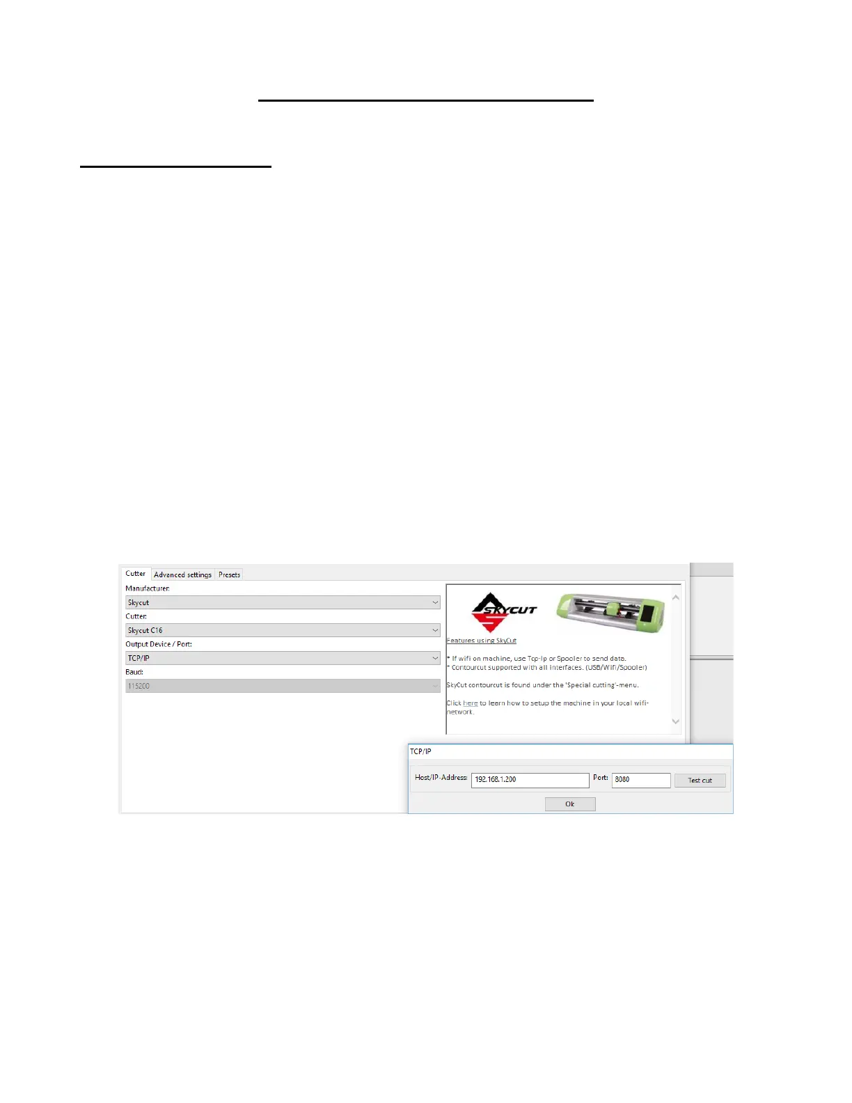 address you selected during setup on the Skycut’s control panel, and have Port set to 8080:
