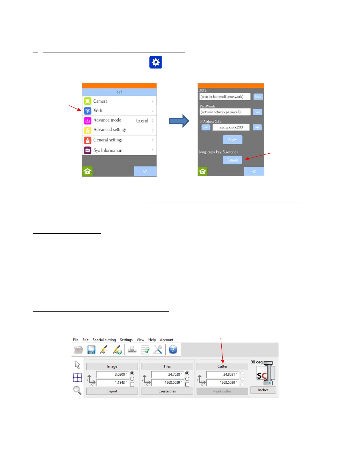 • On the Skycut’s control panel, select Set and then select Wifi. The Wifi screen will appear: