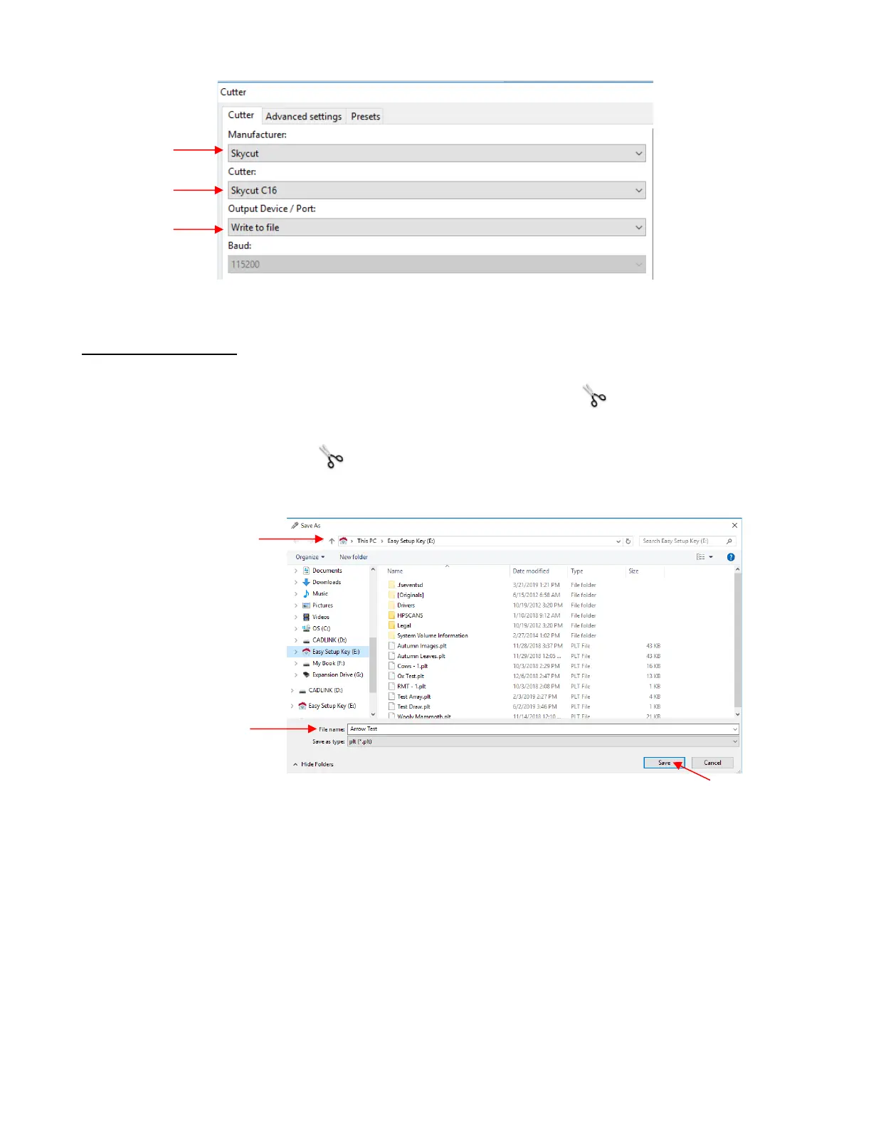 • The following window opens. Browse to locate the USB flash drive you plan to use and name your PLT file: