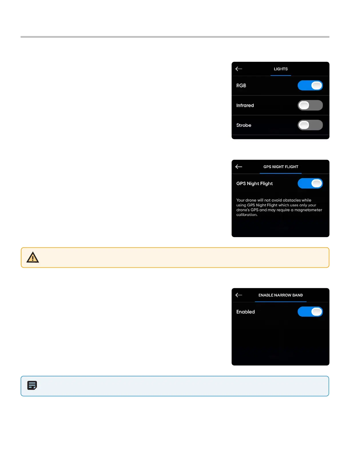 WARNING: GPS Night Flight mode requires flying without obstacle avoidance. Skydio X2D may drift slightly when in GPS
