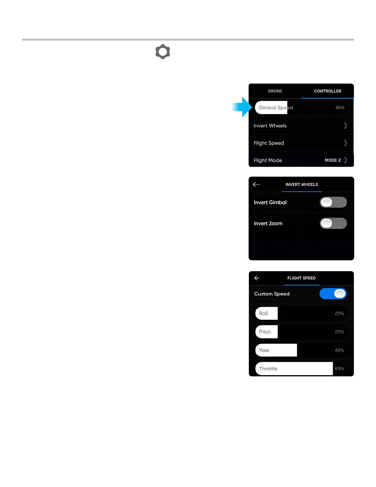 Gimbal Speed: controls how quickly the camera gimbal pitches up and