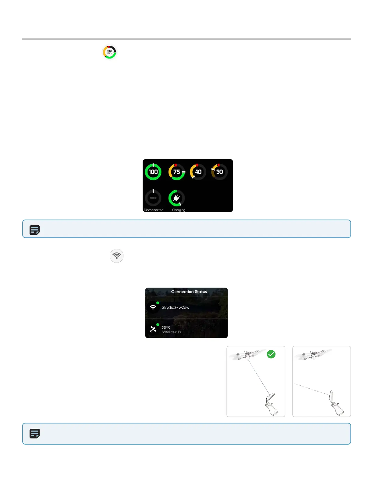 Battery indicator messaging displays how much battery is available for flight, how much battery capacity available