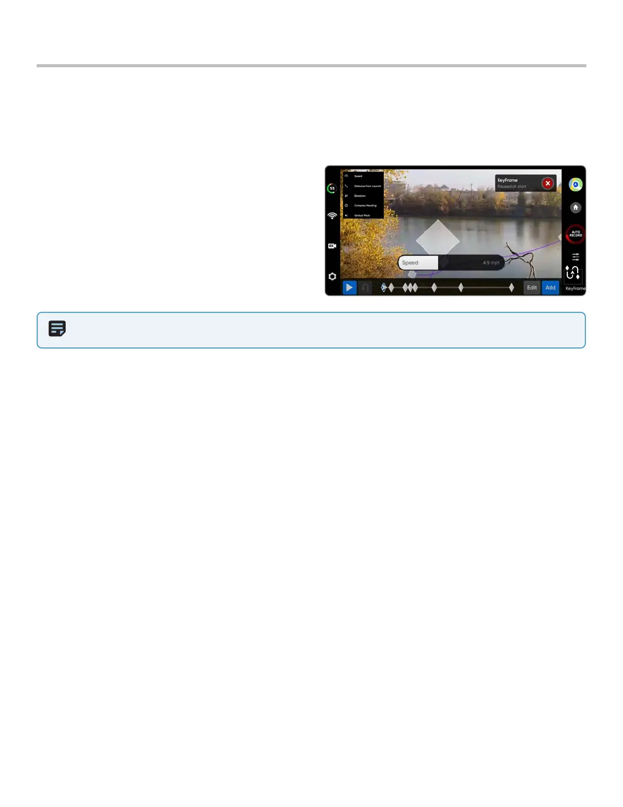 NOTE: Placing your initial keyframe close to your Launch Point will improve the accuracy of your flight path. KeyFrame