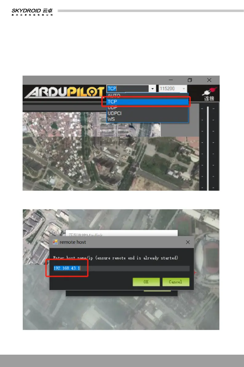 3)打开Mission Planner连接方式选择TCP