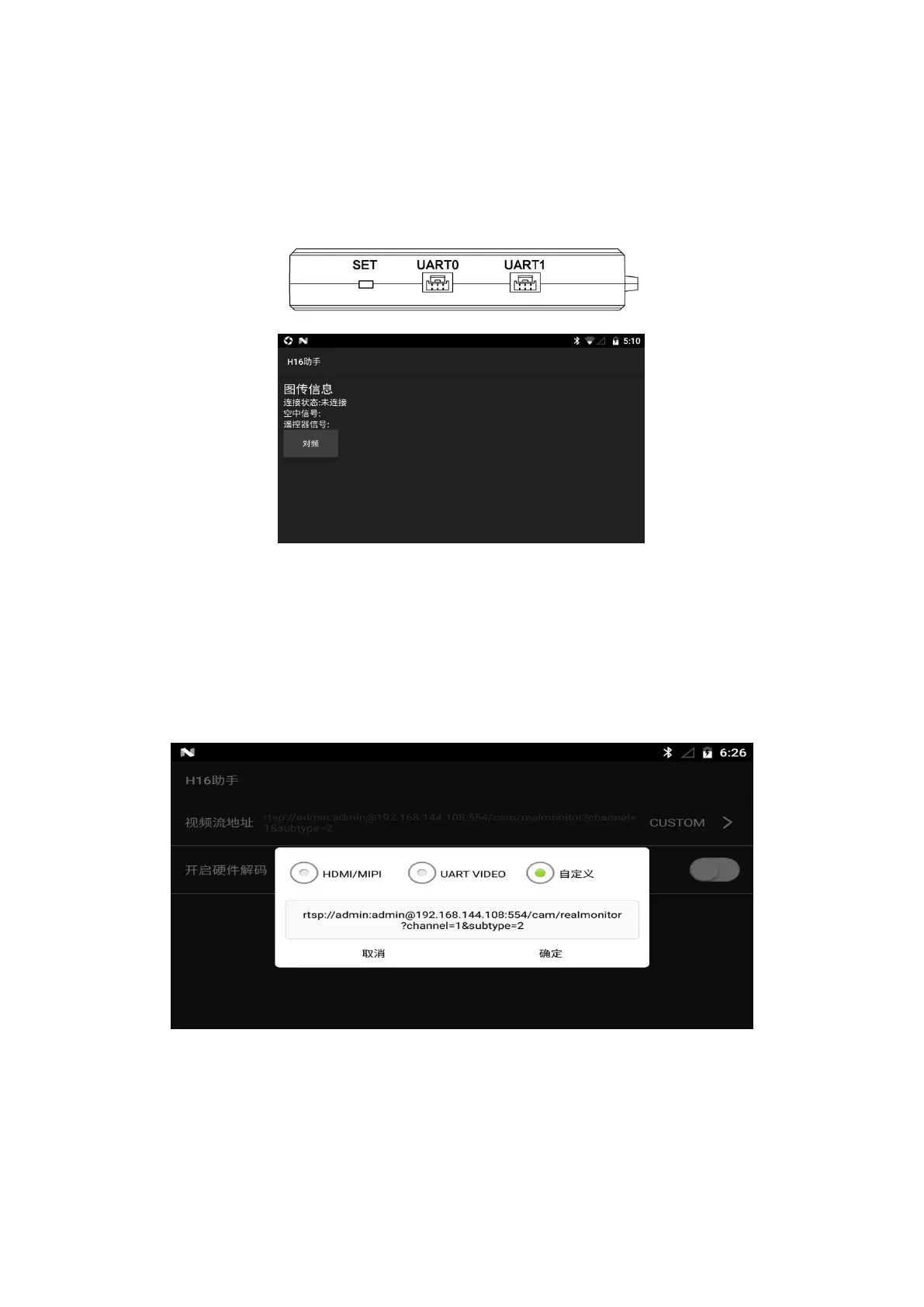 ② UART VIDEO mode, to display single-axis gimbal and MINI camera videos/images (need to