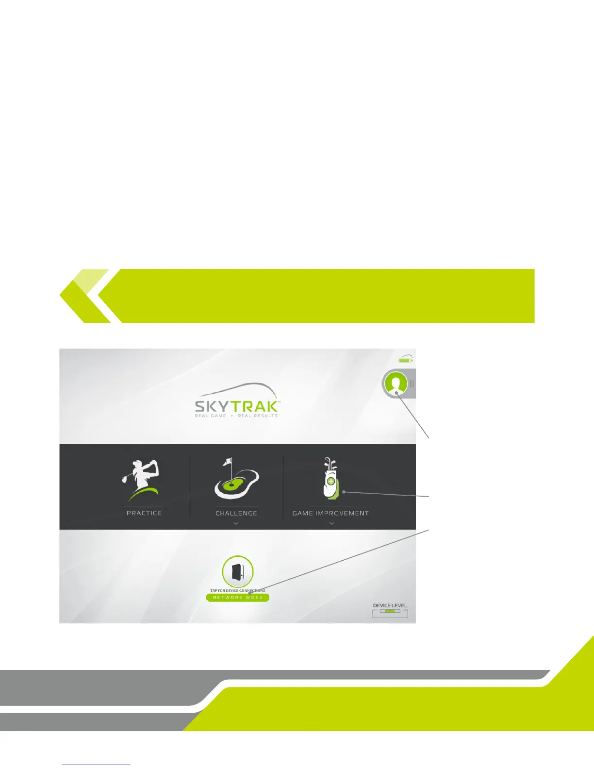Here you can edit your Account Prole, get connected to the SkyTrak unit, and choose