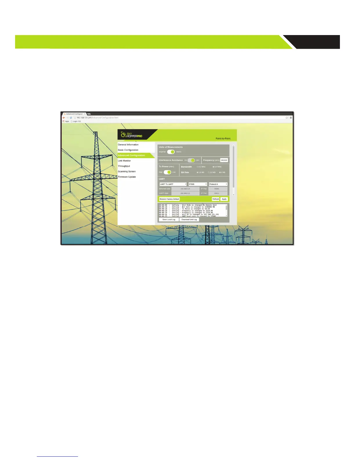 Please refer to the UART-to-Ethernet Connection Guide online at www.skyhopper.biz/prosupport.