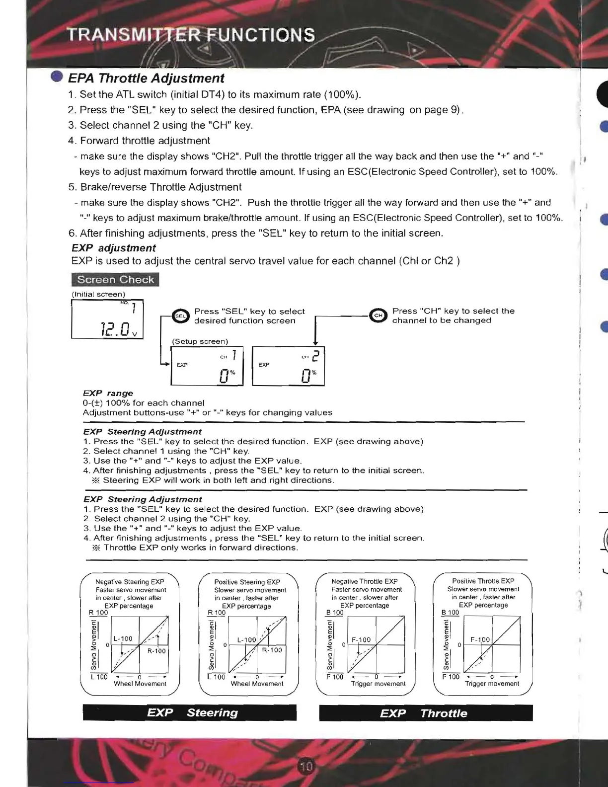 EXP is used to adjust the central servo travel value for each channel (Chi or Ch2 )