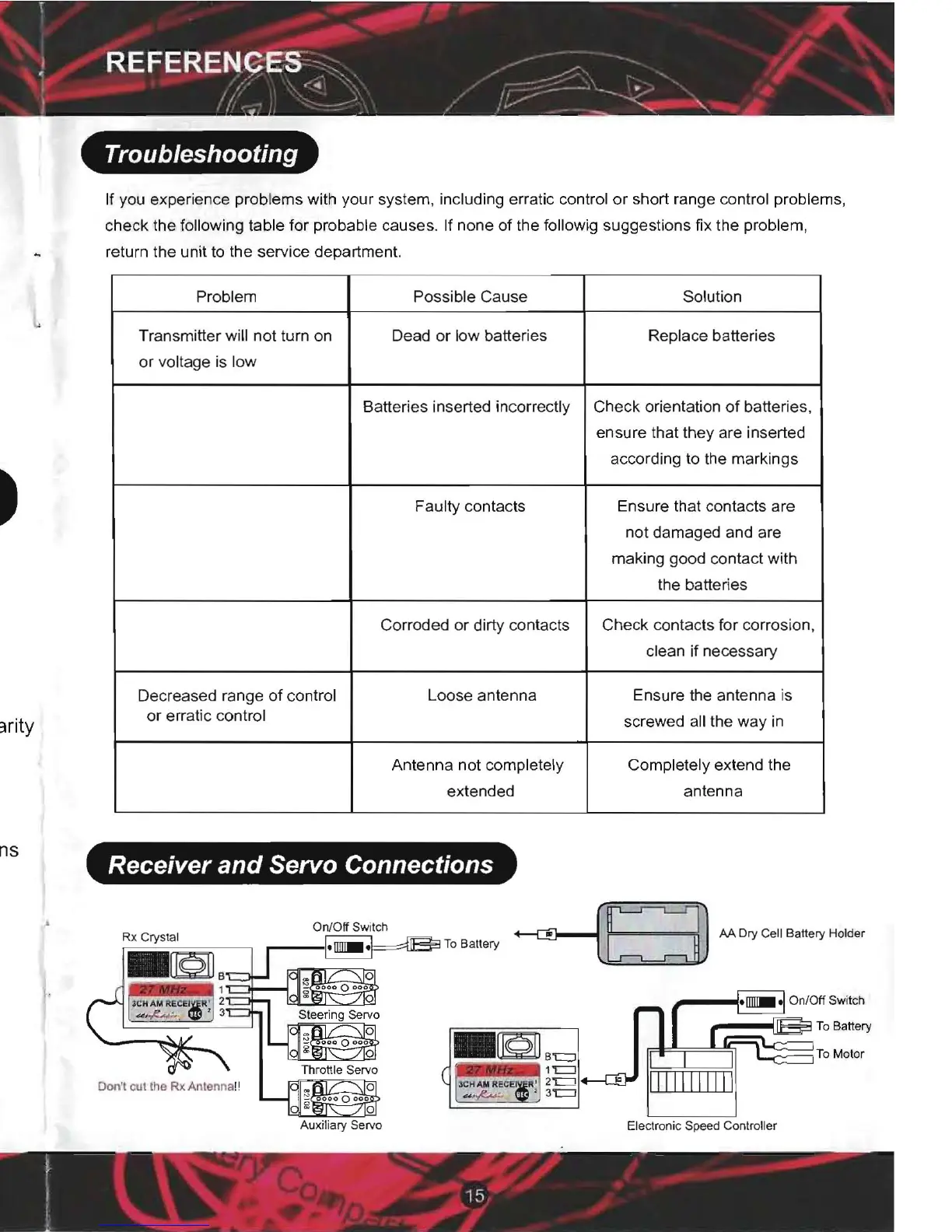 If you experience problems with your system, including erratic control or short range control problems,