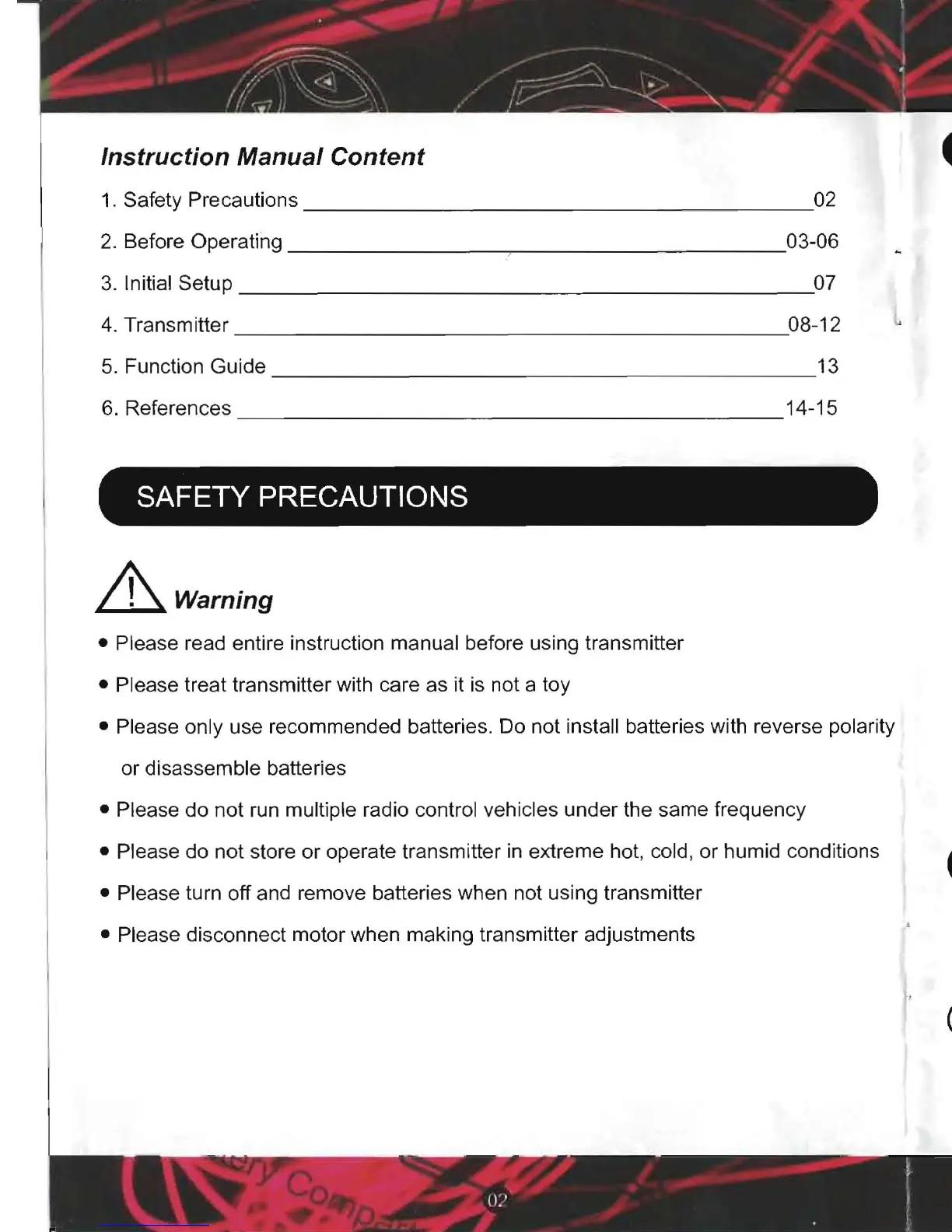 • Please read entire instruction manual before using transmitter