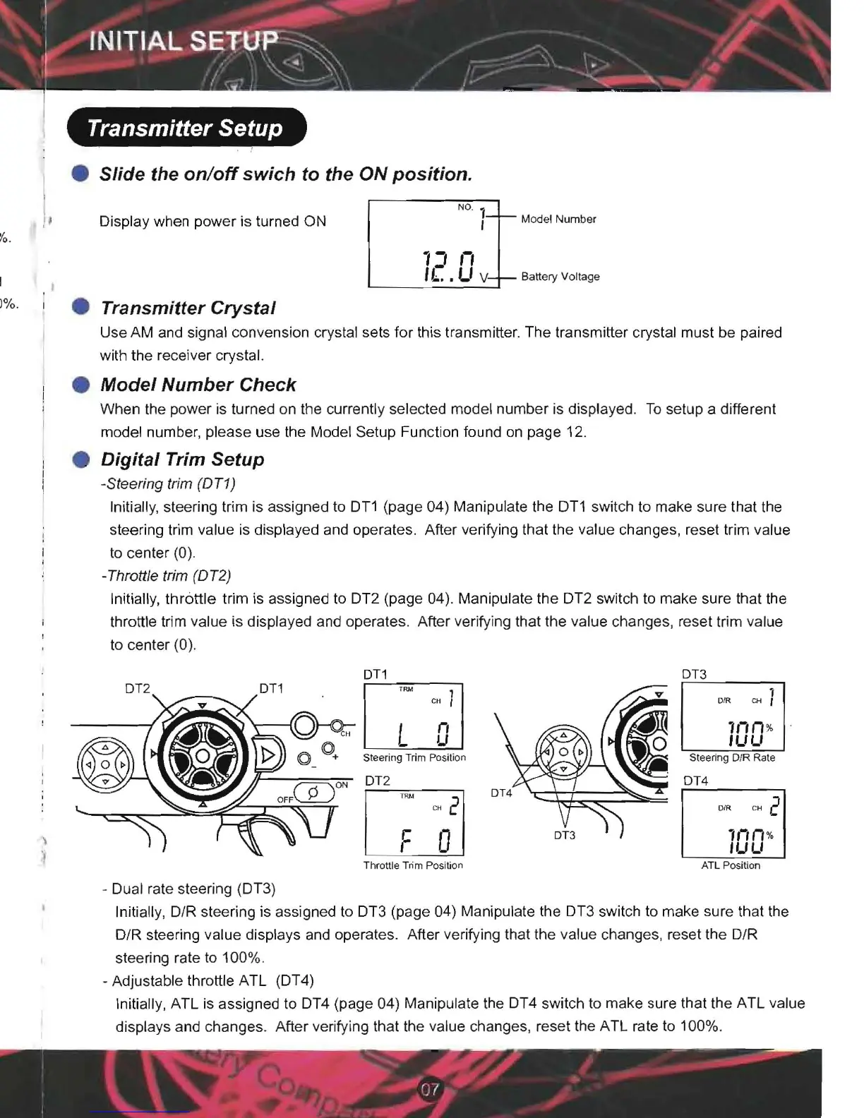 Initially, steering trim is assigned to D'Tl (page 04) Manipulate the DT1 switch to make sure that the