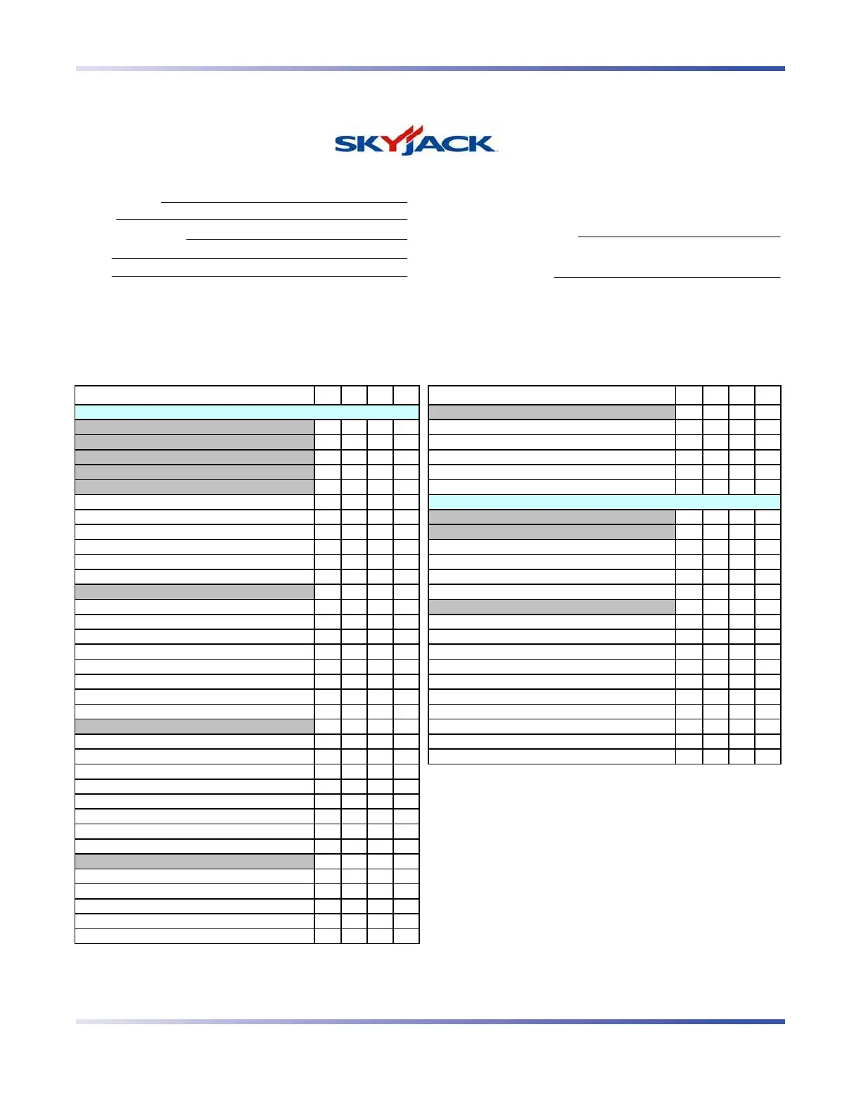 Each item shall be inspected using the the appropriate section of the Skyjack operating manual.