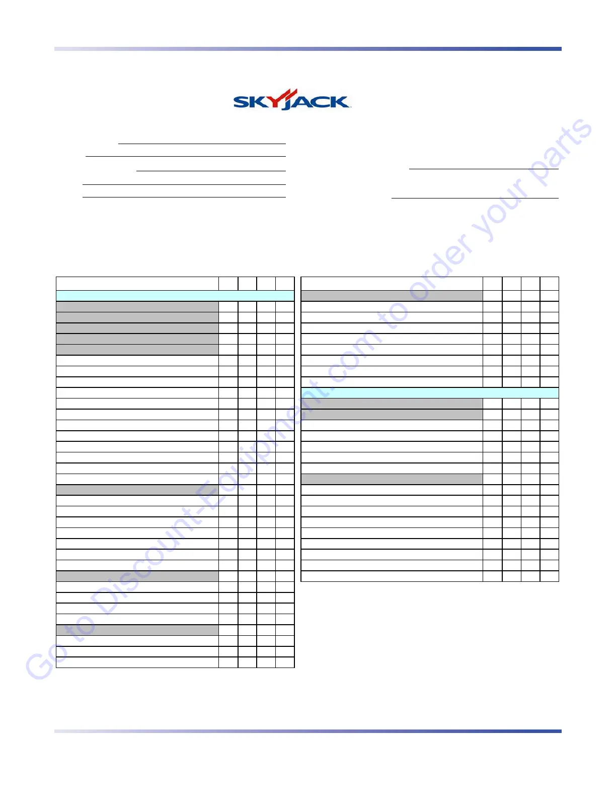 Each item shall be inspected using the appropriate section of the Skyjack operating manual.