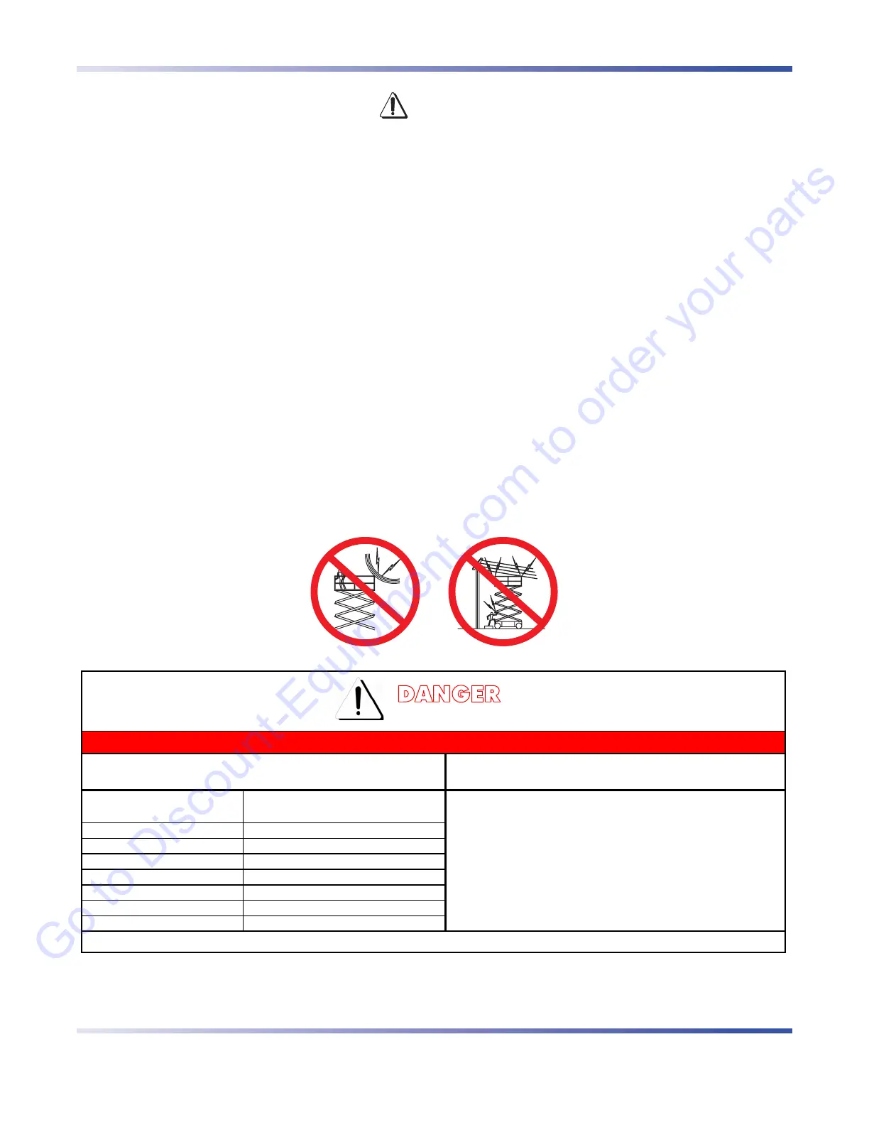 This aerial platform is not electrically insulated. Maintain a Minimum Safe Approach Distance (MSAD) from energized