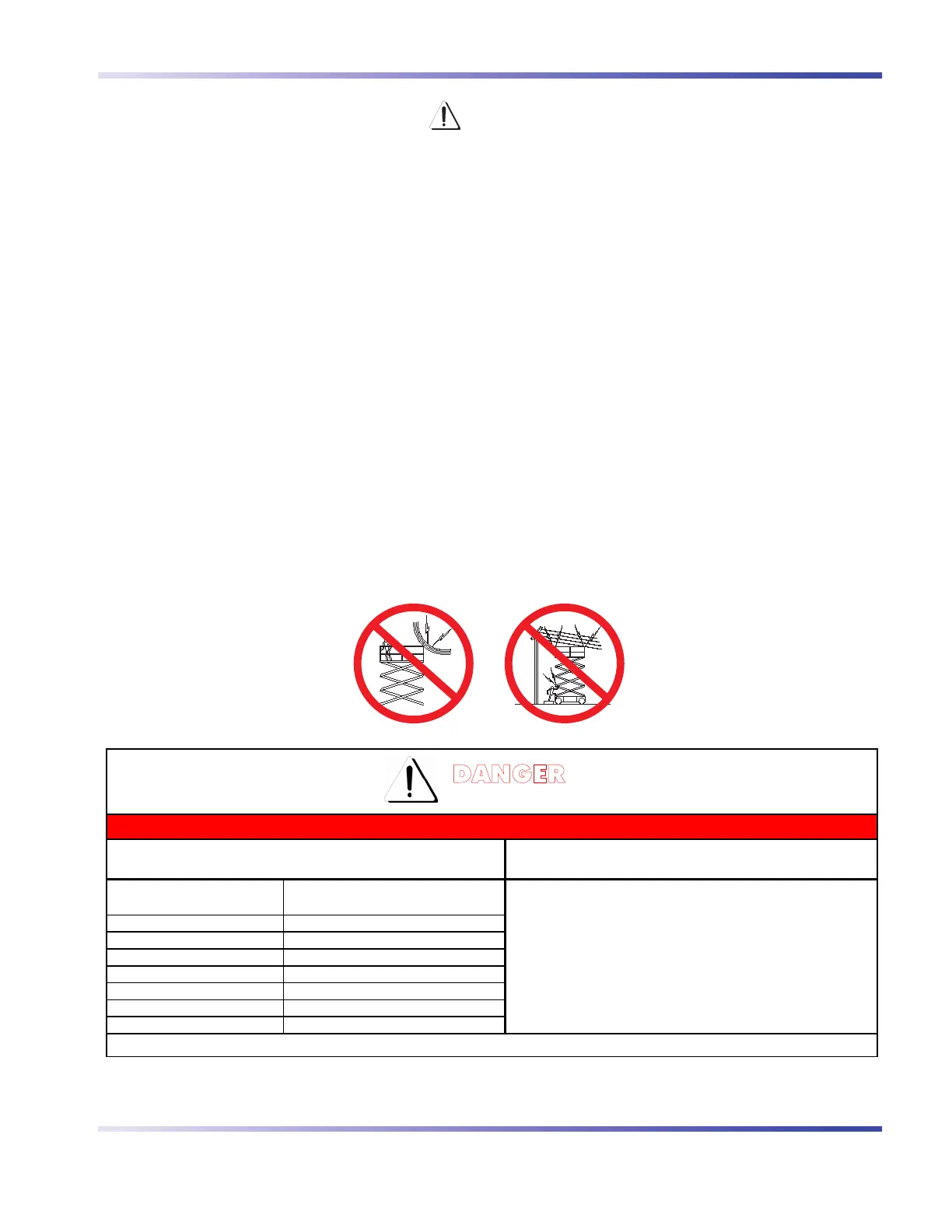 power lines and parts as listed below. The operator must allow for the platform to sway, rock or sag. This aerial