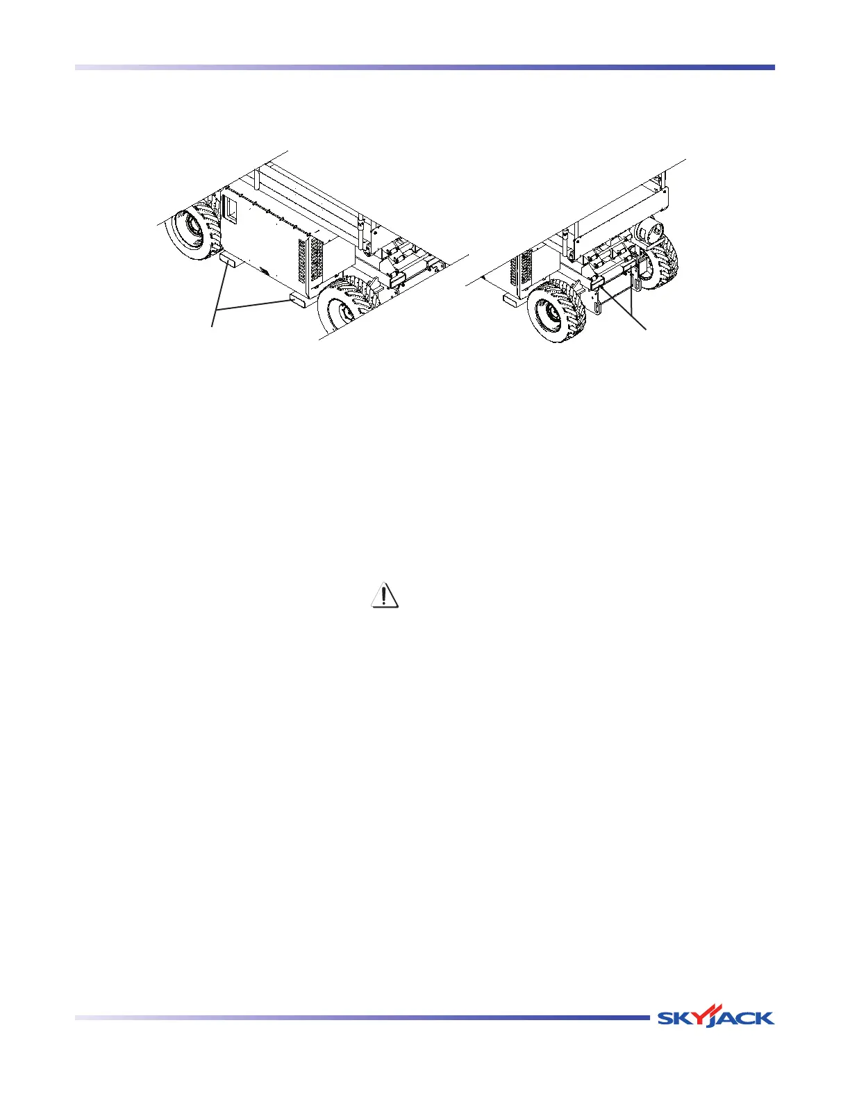 When transporting, the aerial platform must be secured to the truck or trailer deck. Tie downs are