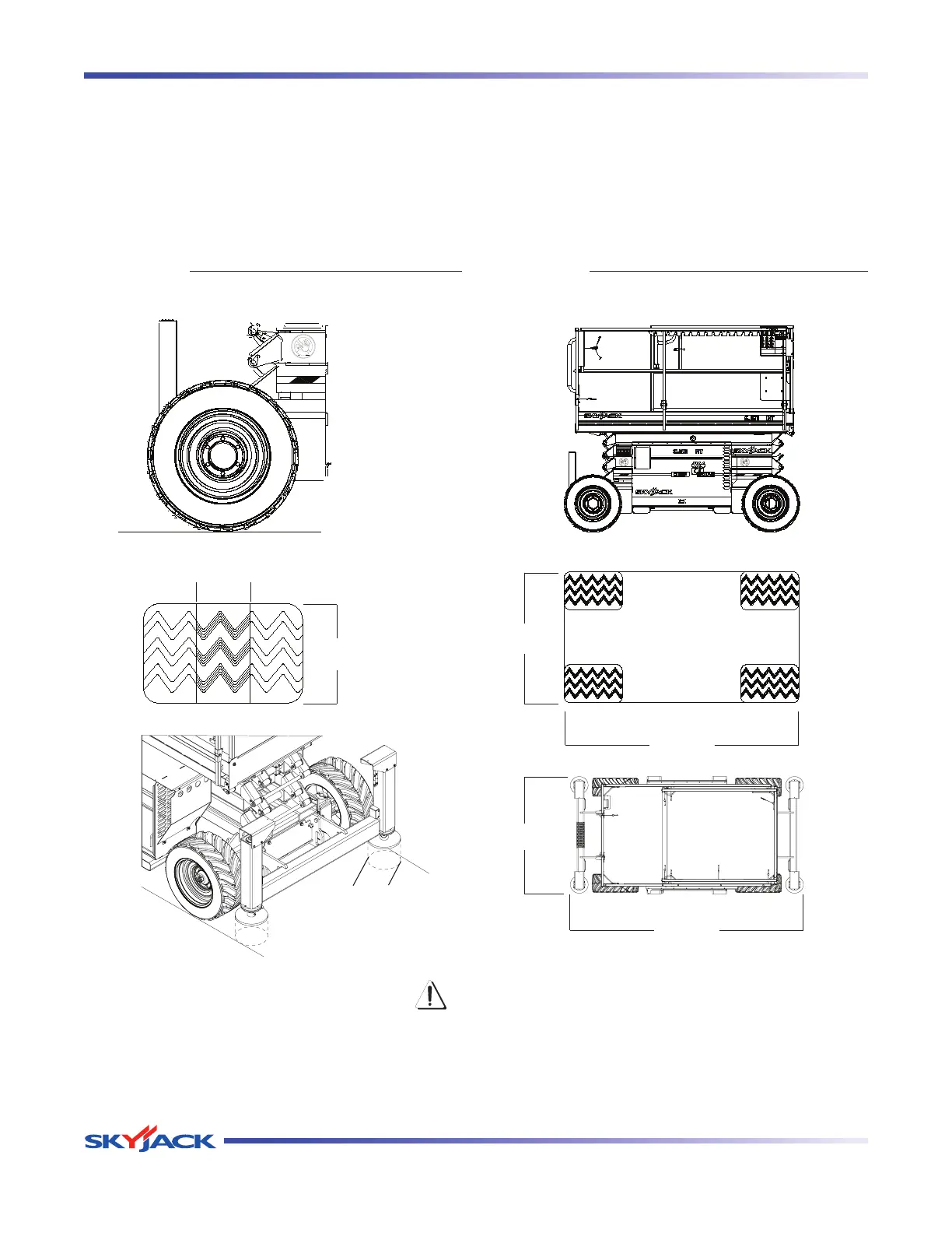 Skyjack-approved type. Failure to operate with matched approved tires in good condition may