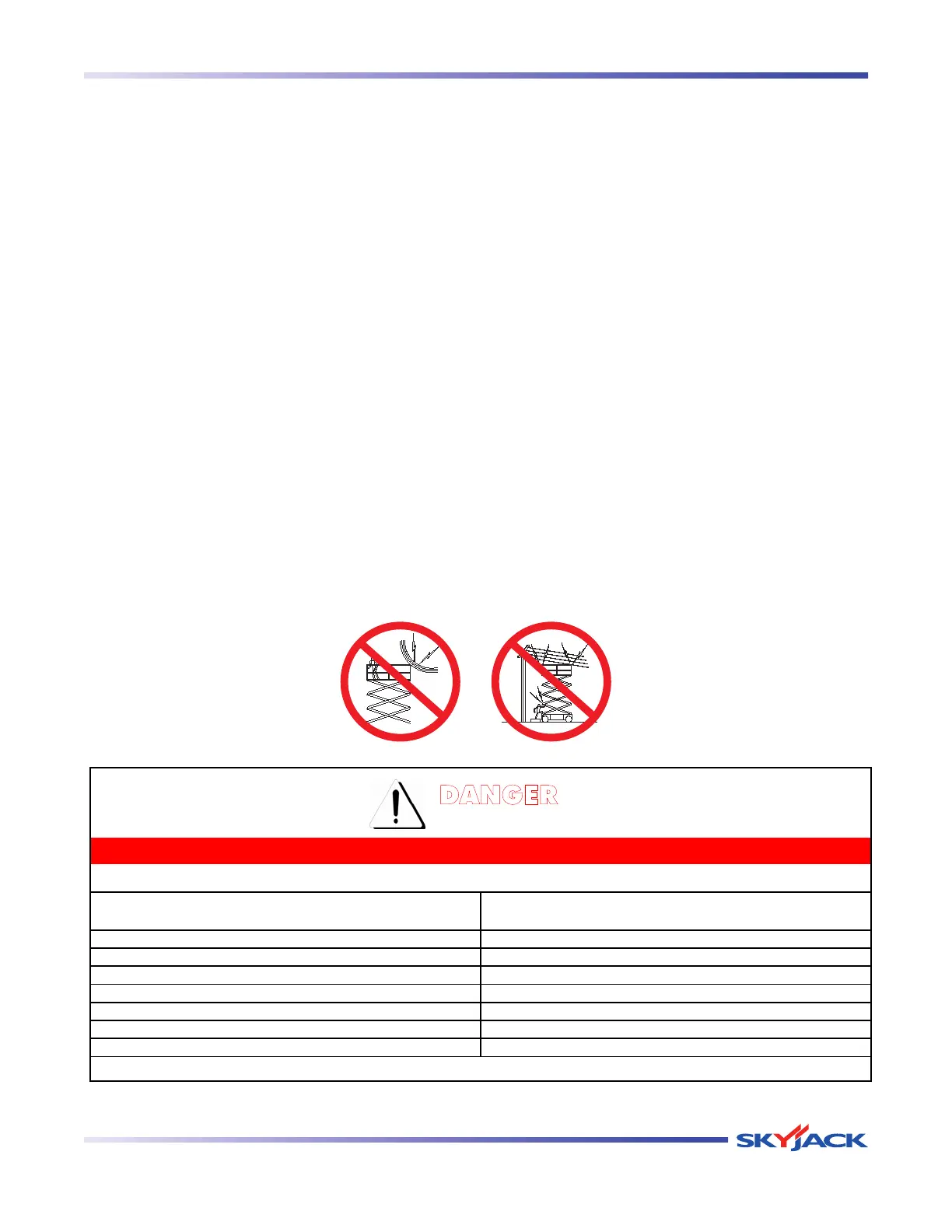 power lines and parts as listed below. The operator must allow for the platform to sway, rock or sag. This aerial
