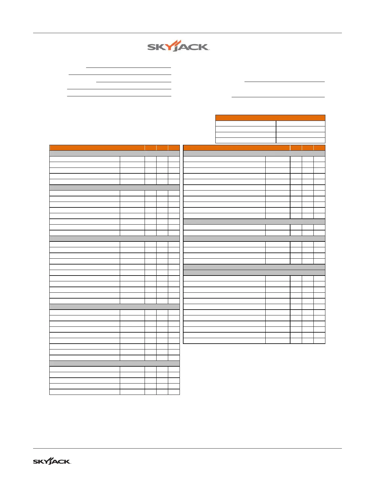 Note: Make a copy of this page or visit the Skyjack web site: www.skyjack.com for a printable copy.