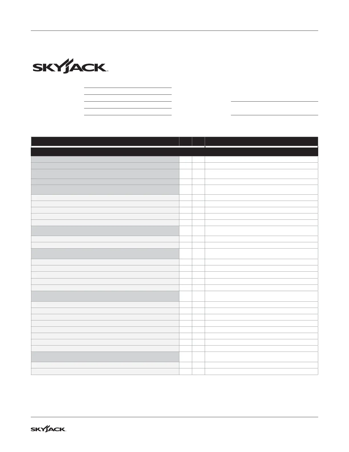 Operator’s checklist Section 4 – Inspections Before Operation