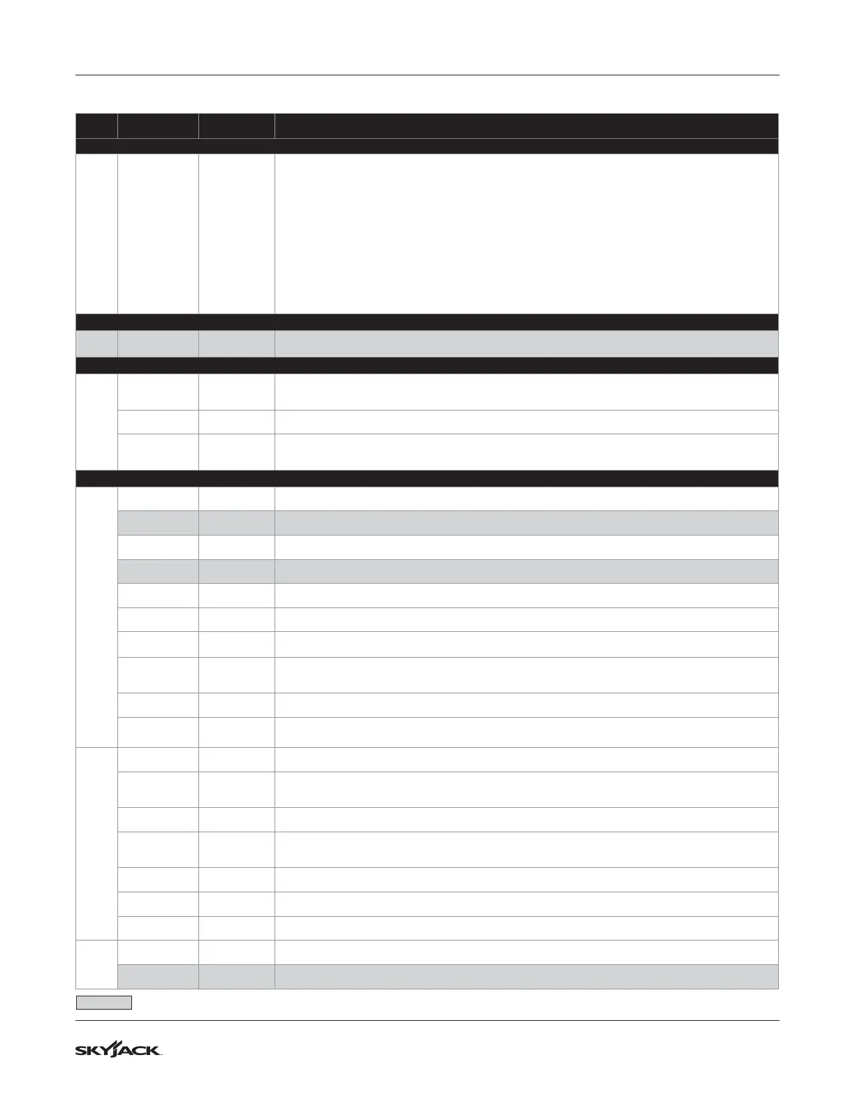 Skycoded Control Module Menu Table (Continued)