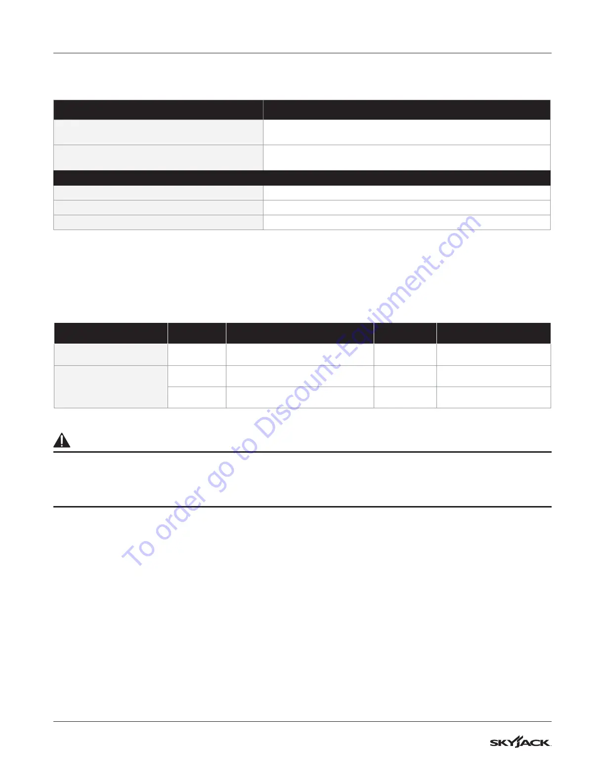 Skyjack. The use of other tires can make the MEWP less stable. If you do not obey, there is a risk of death