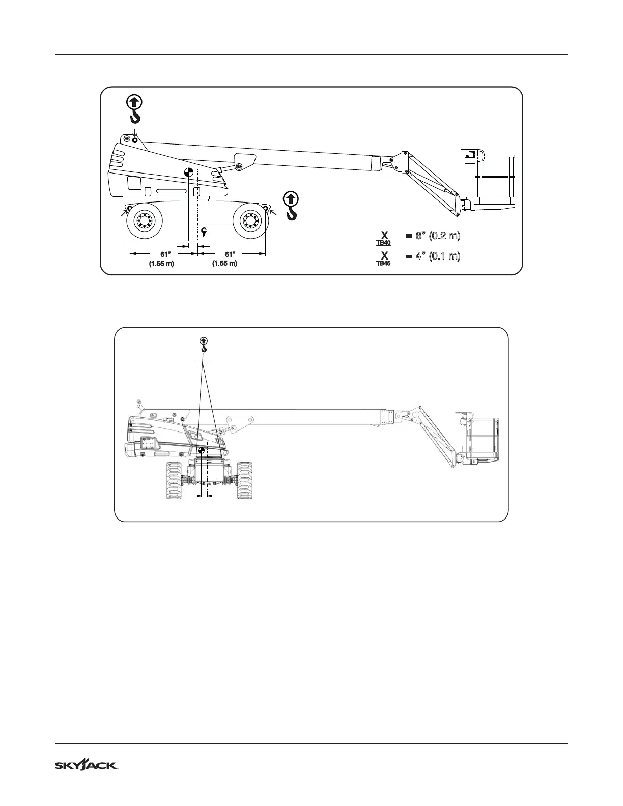Figure 21 SJ61 T+/SJ66 T+ lift points and approximate center of gravity