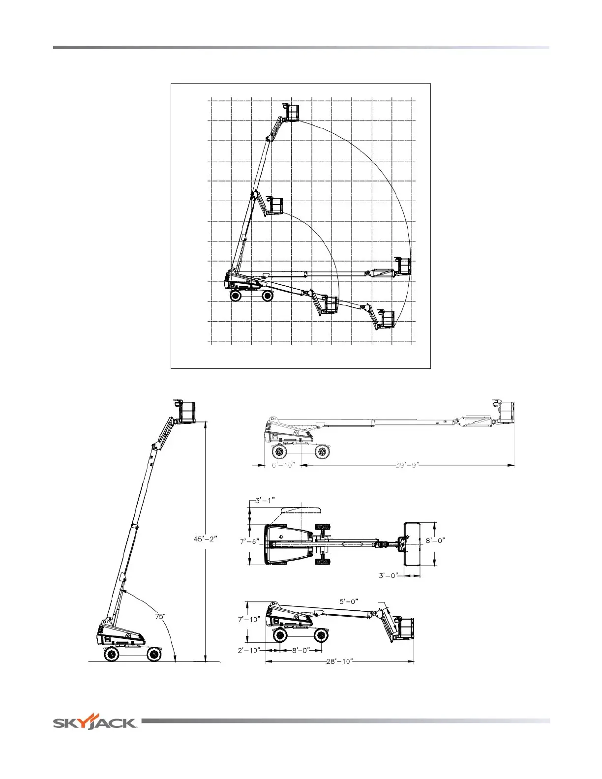 Skyjack SJ66T - Dimension and Reach Diagram - SJ 45 T; Dimensions - 45 T