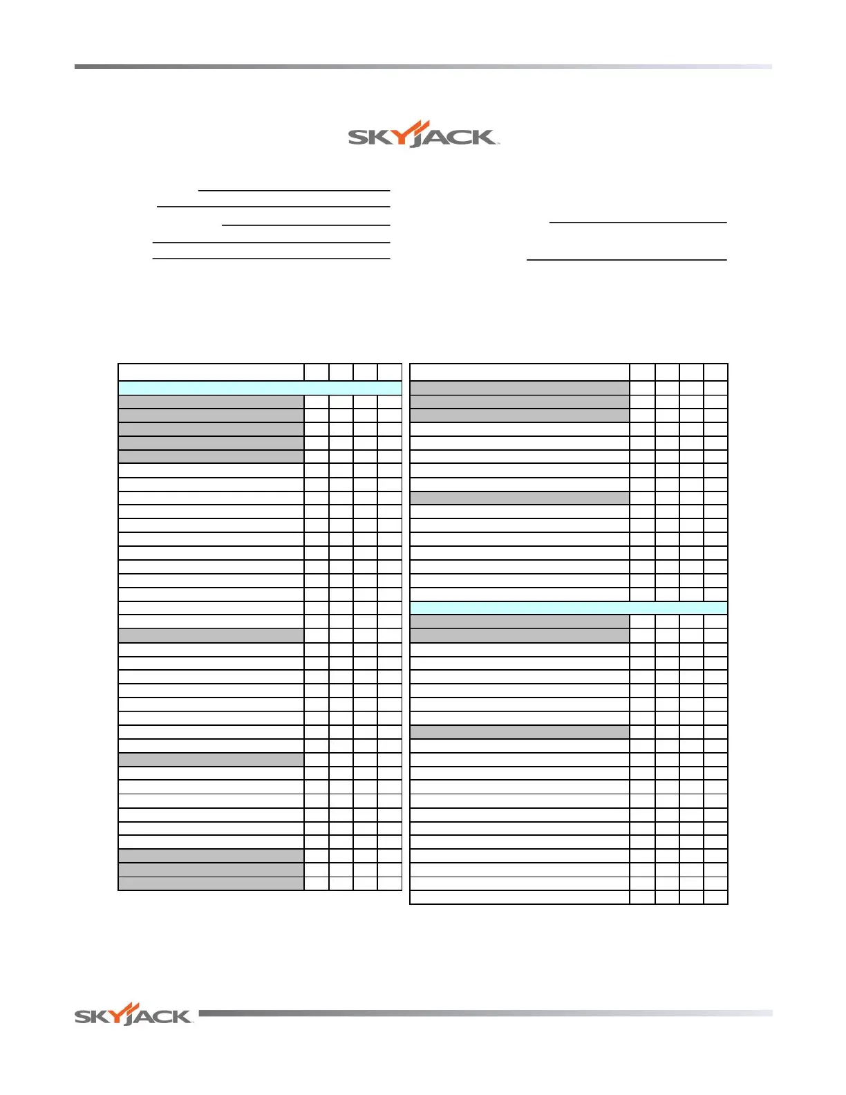 Each item shall be inspected using the appropriate section of the Skyjack operating manual.