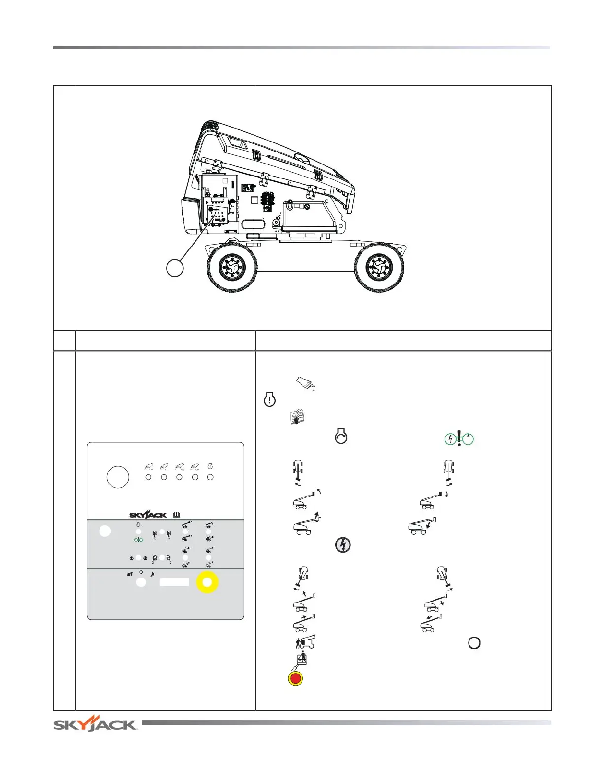 Select “ ” to raise main boom or “ ” to lower main boom.