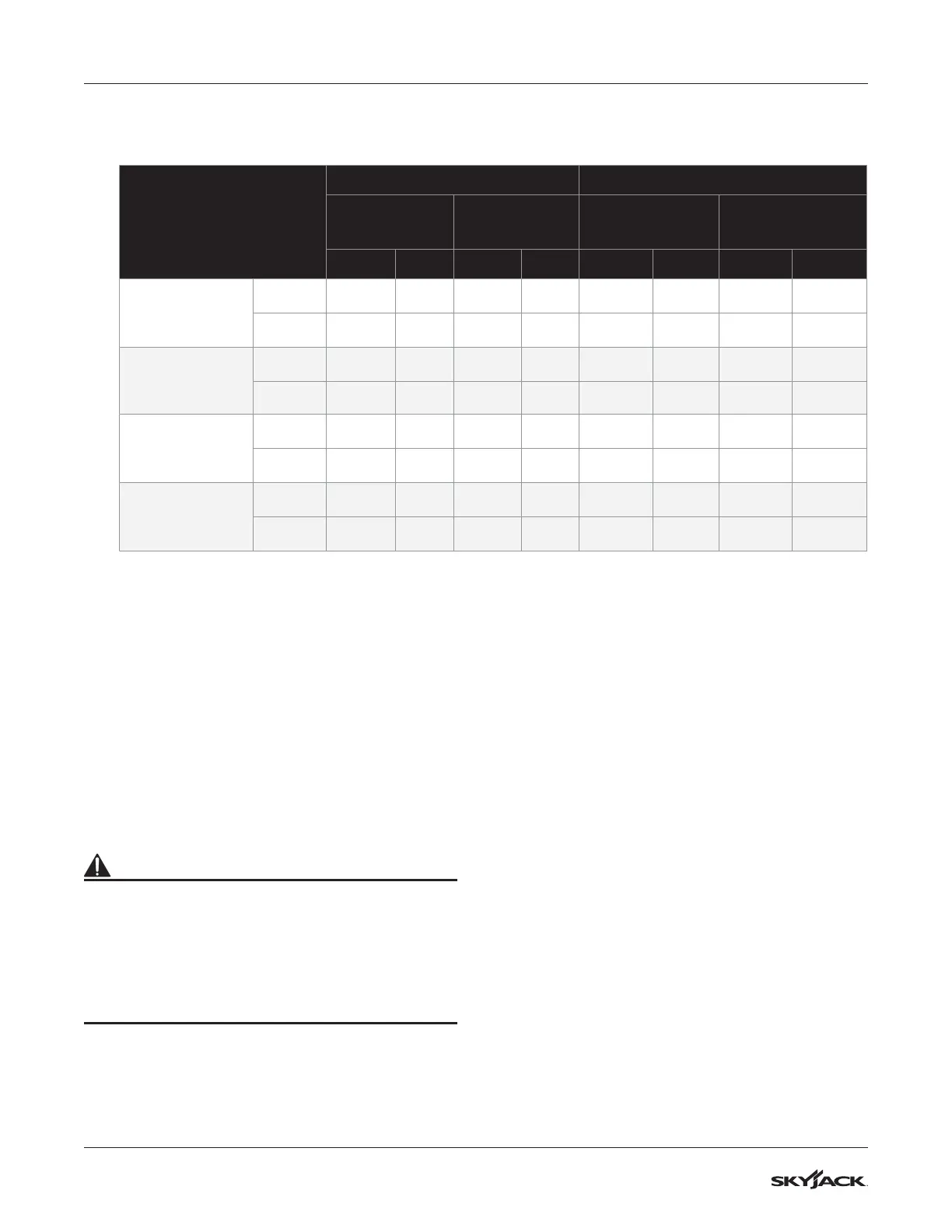 Do not use tires other than the tires that Skyjack