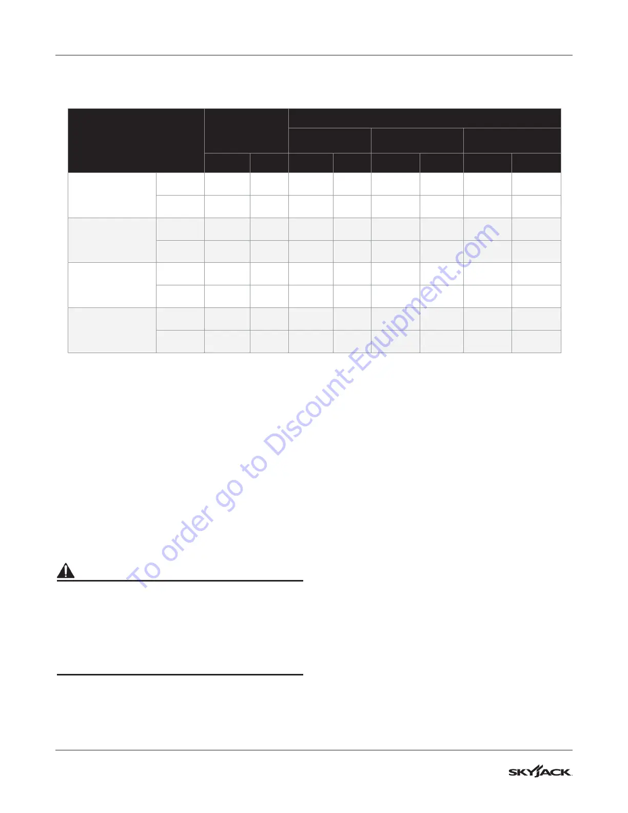 Do not use tires other than the tires that Skyjack