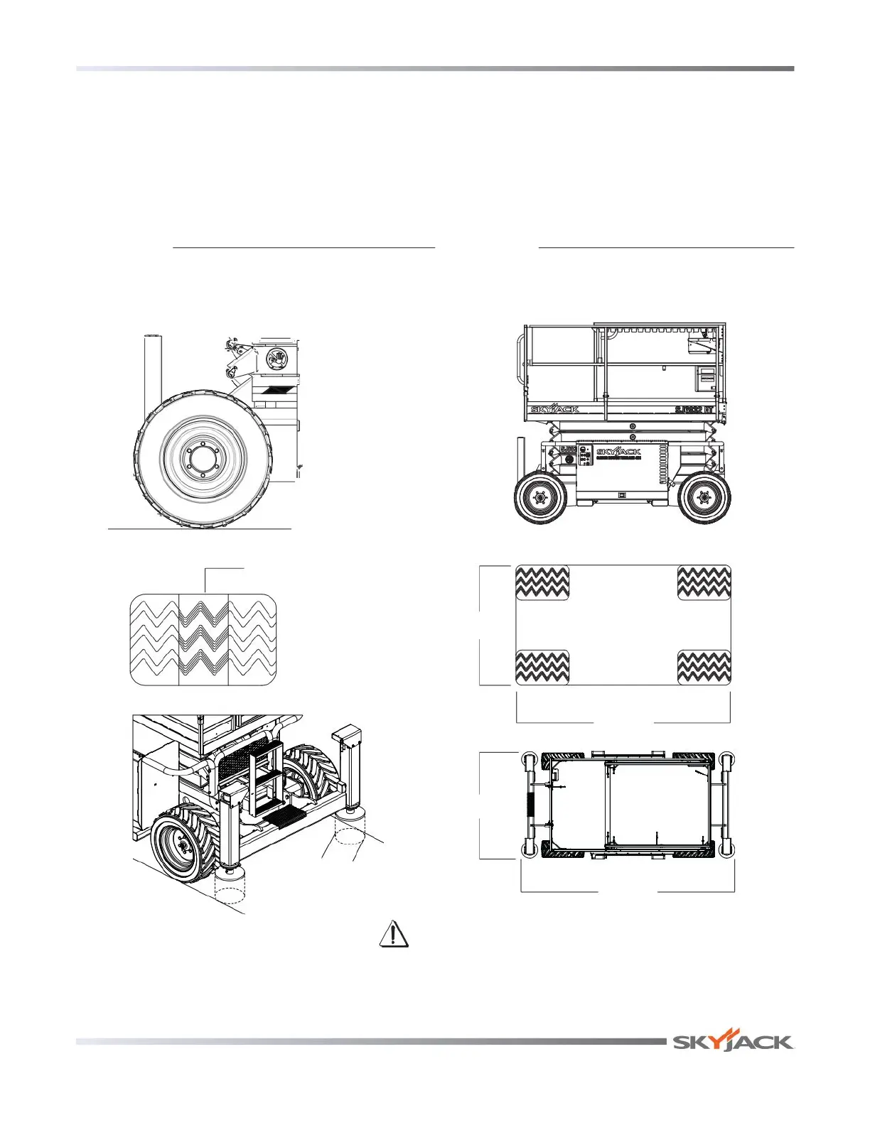 this equipment can adversely affect stability. Therefore, replace tires only with the exact Skyjack-