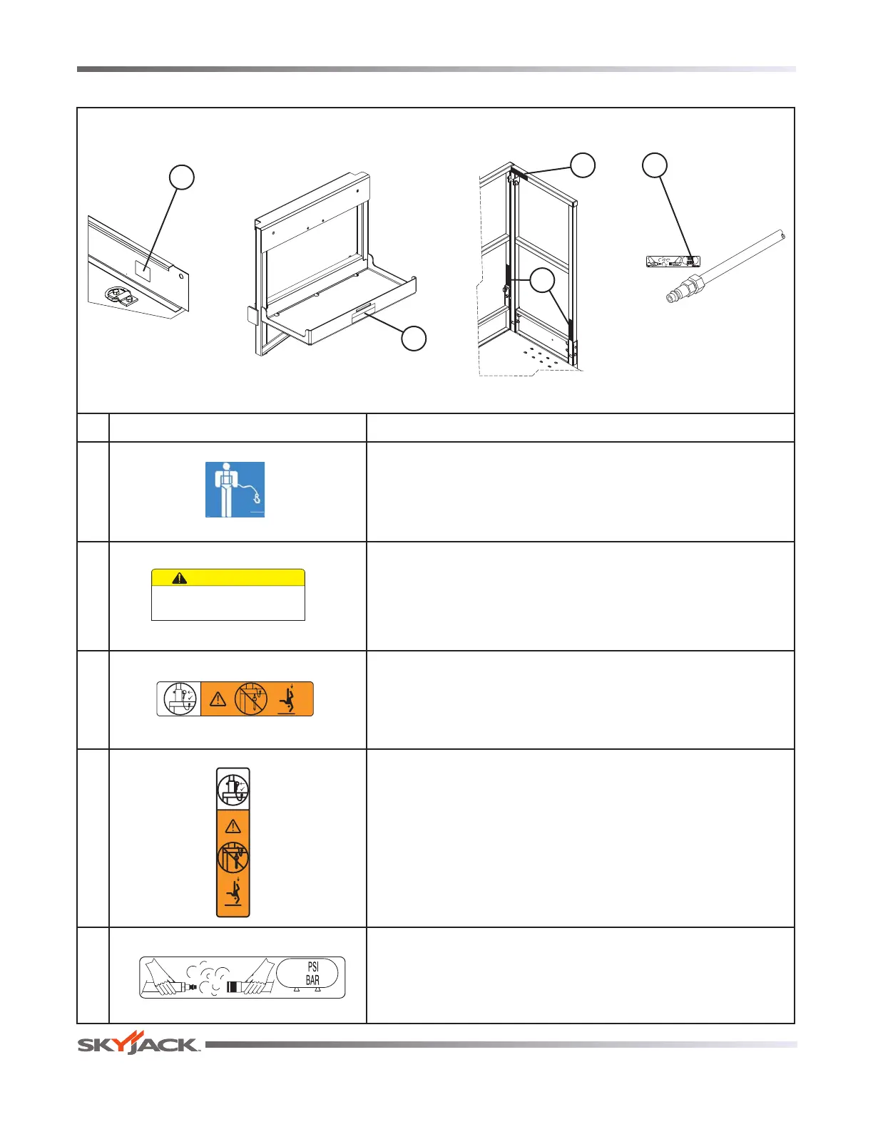WARNING! Falling Hazard. Make sure hinged railing is pinned
