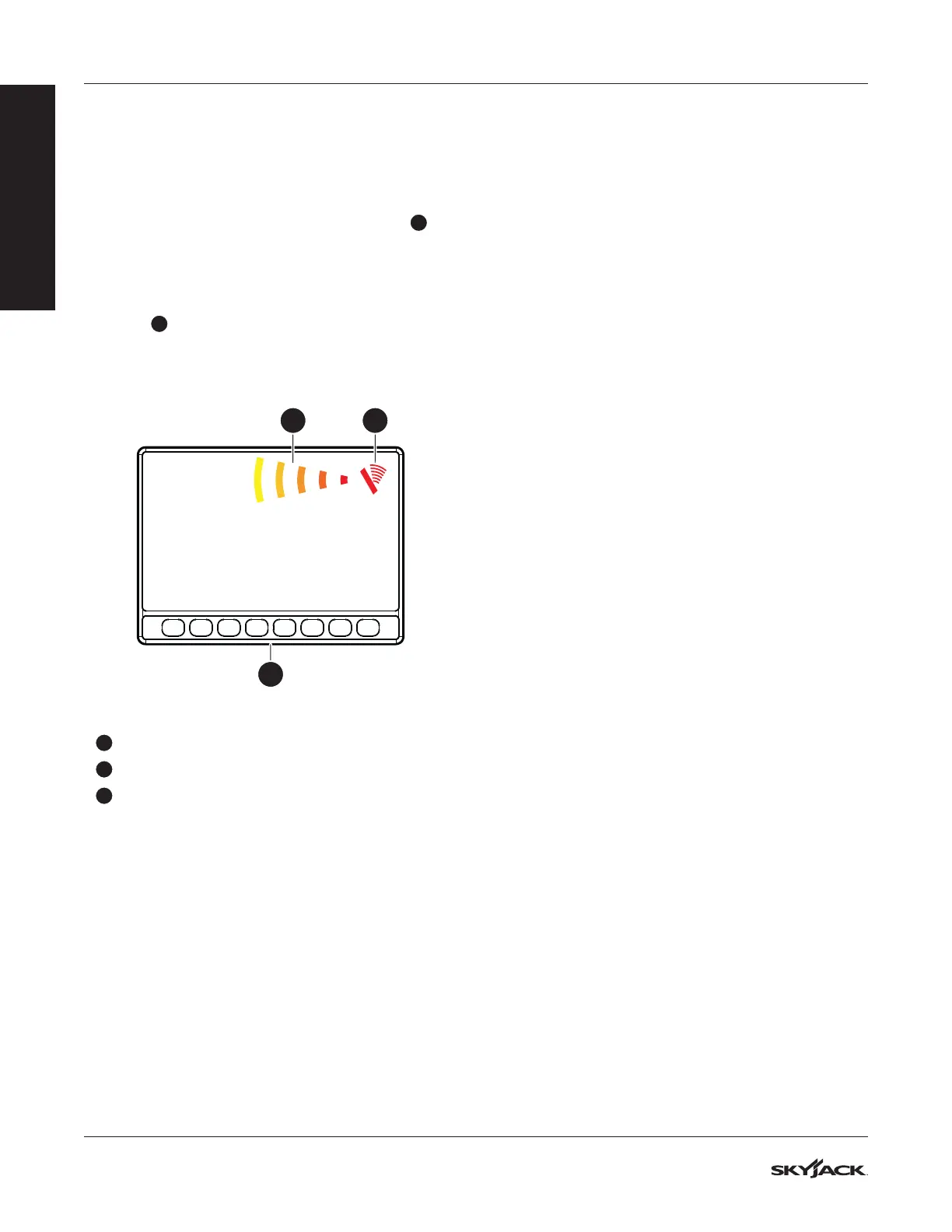 behind the telehandler. A green status symbol