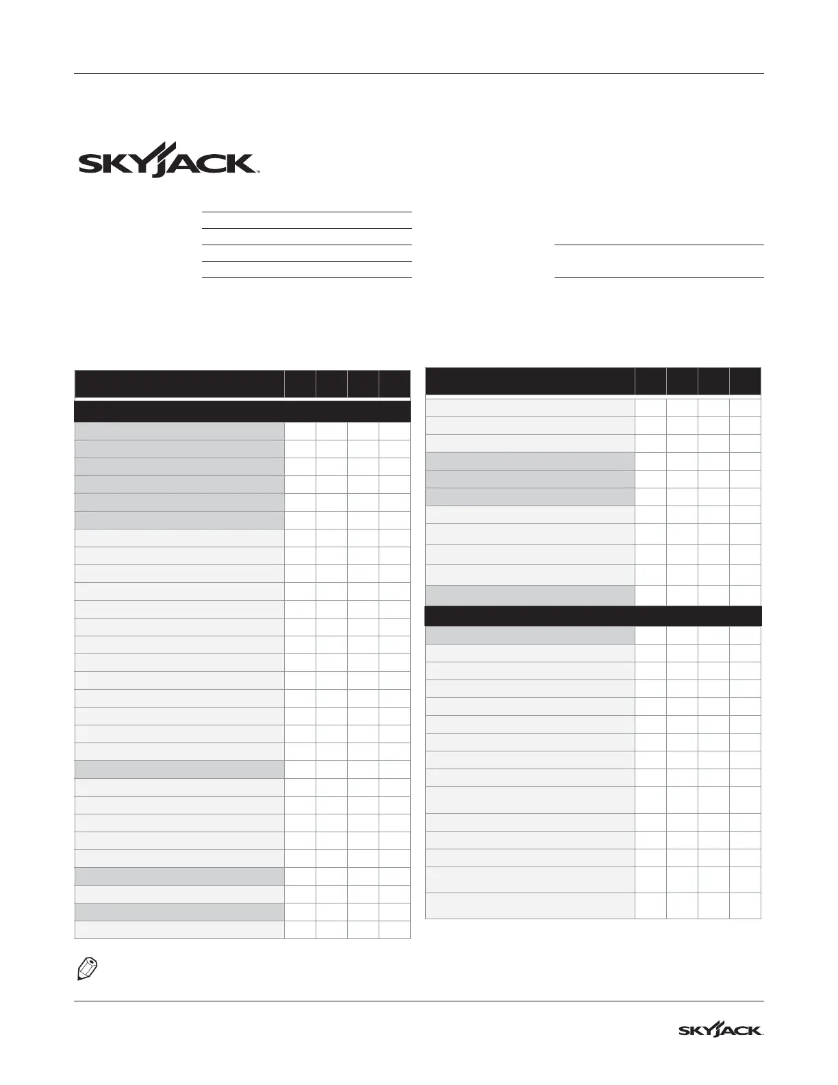 NOTE: Make a copy of this page or visit the Skyjack website at www.skyjack.com for a printable copy.