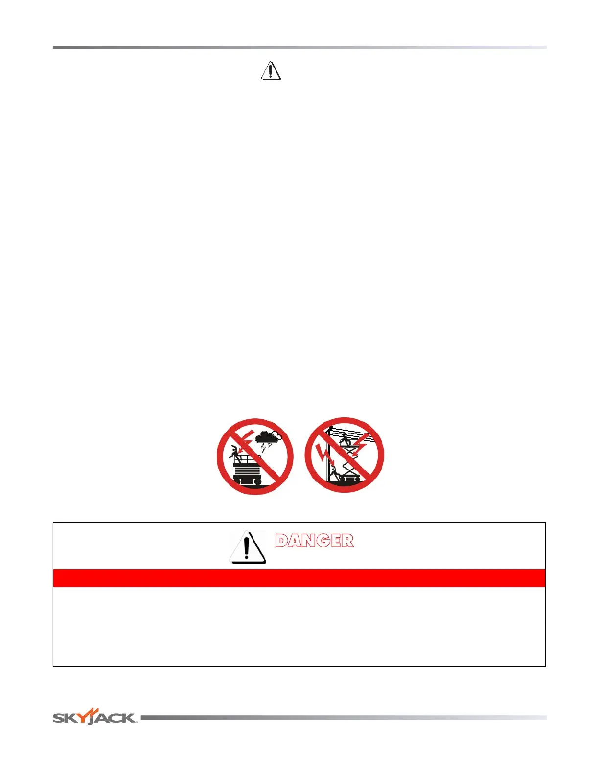 DO NOT OPERATE THE AERIAL PLATFORM DURING LIGHTNING OR STORMS.