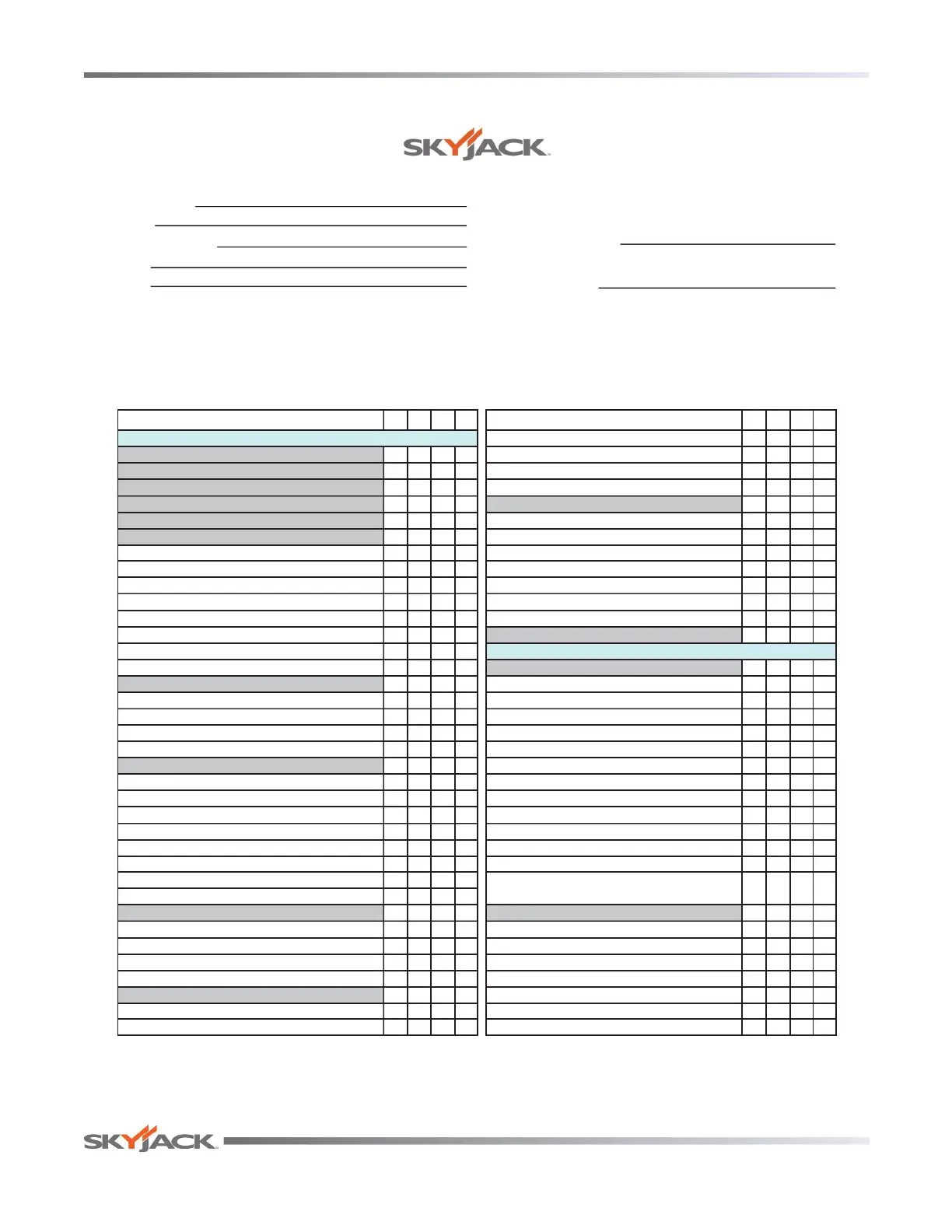 Each item shall be inspected using the appropriate section of the Skyjack operating manual.