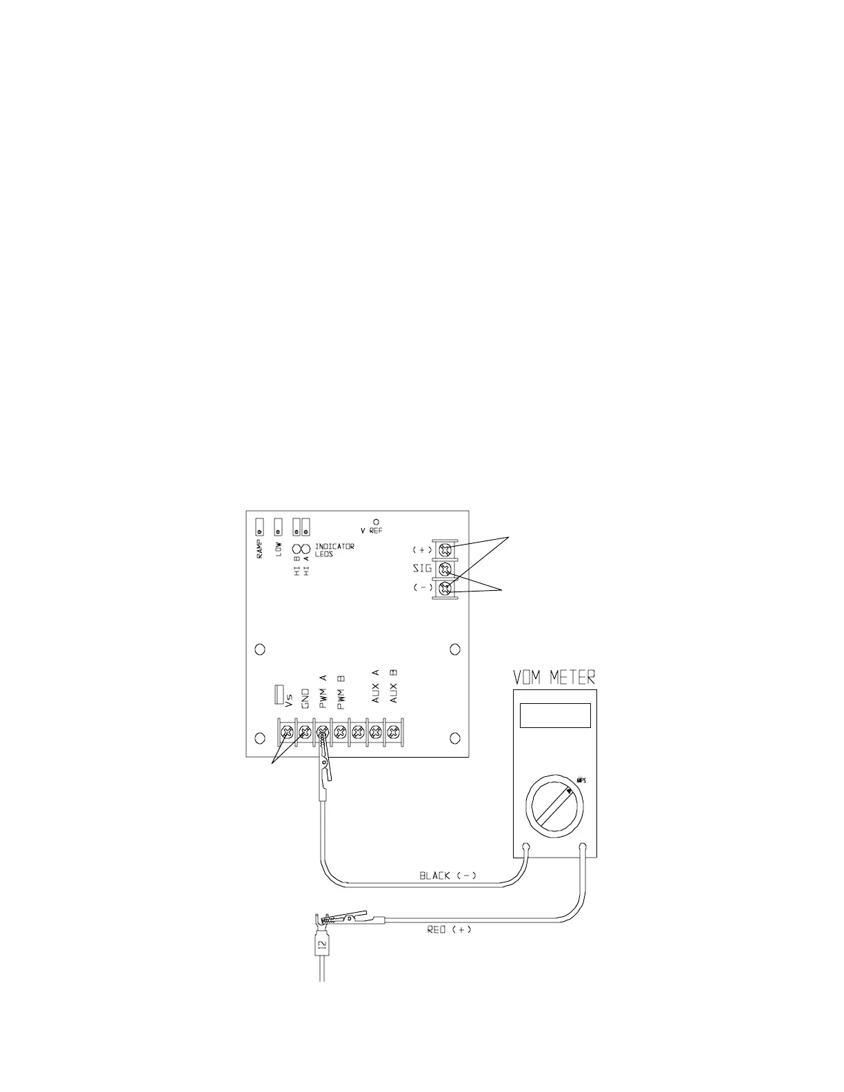 8. Attach the Meter leads to the terminals labeled “-” and “SIG”.