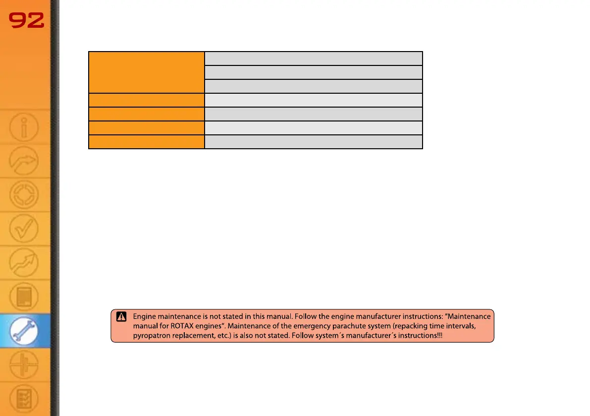 Act in accordance to the Maintenance Plan in chapter 9. Check the particular parts and systems of the aircraft at the