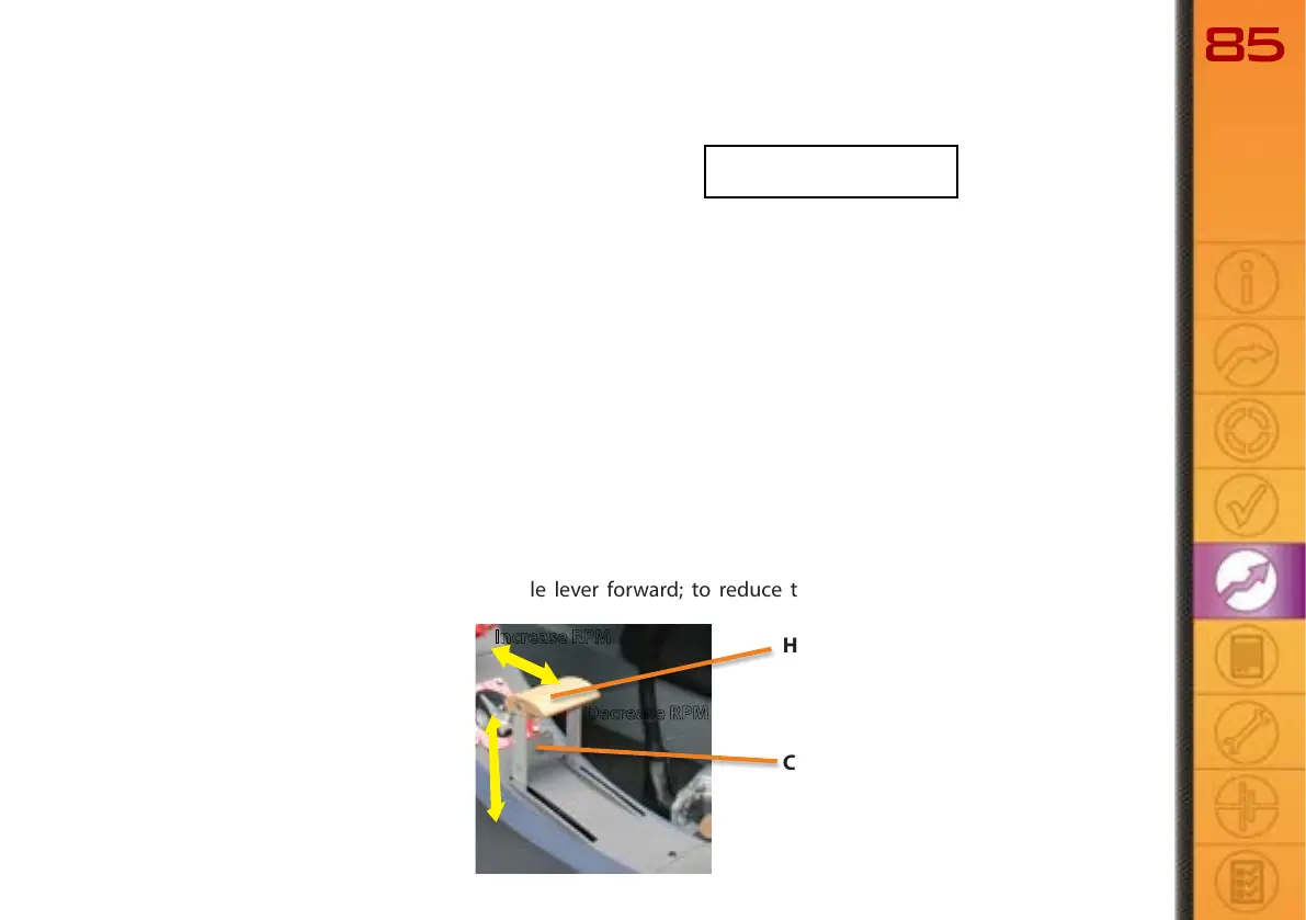To increase the engine speed, push the throttle lever forward; to reduce the engine speed, p the throttle lever