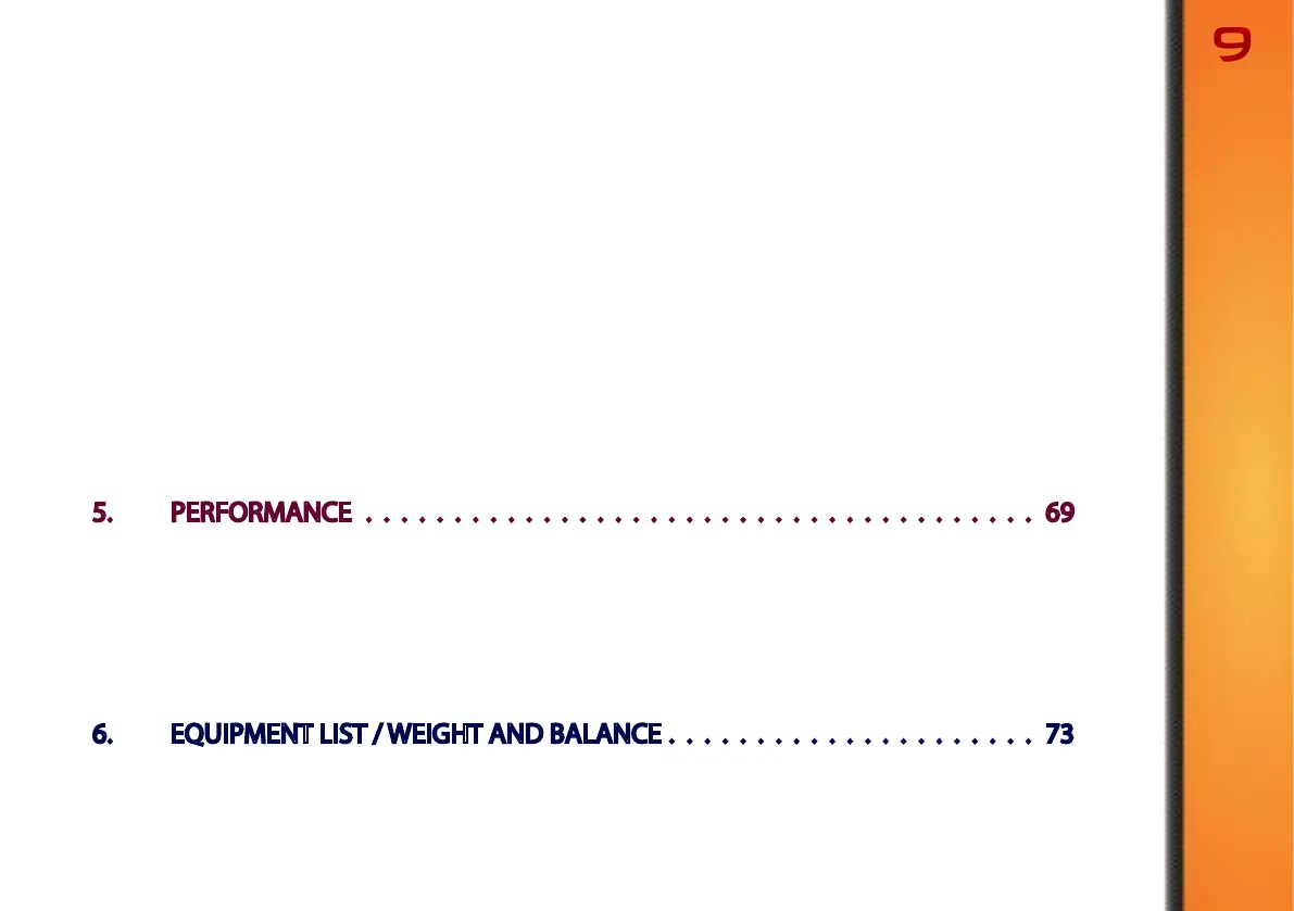 6. EQUIPMENT LIST / WEIGHT AND BALANCE . . . . . . . . . . . . . . . . . . . . . 73